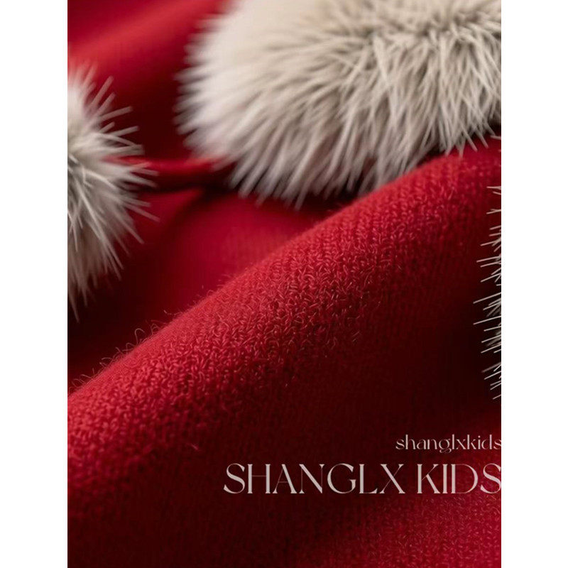 女童毛呢洋气外套冬季2026新款女孩本命年中长款儿童装红色拜年服
