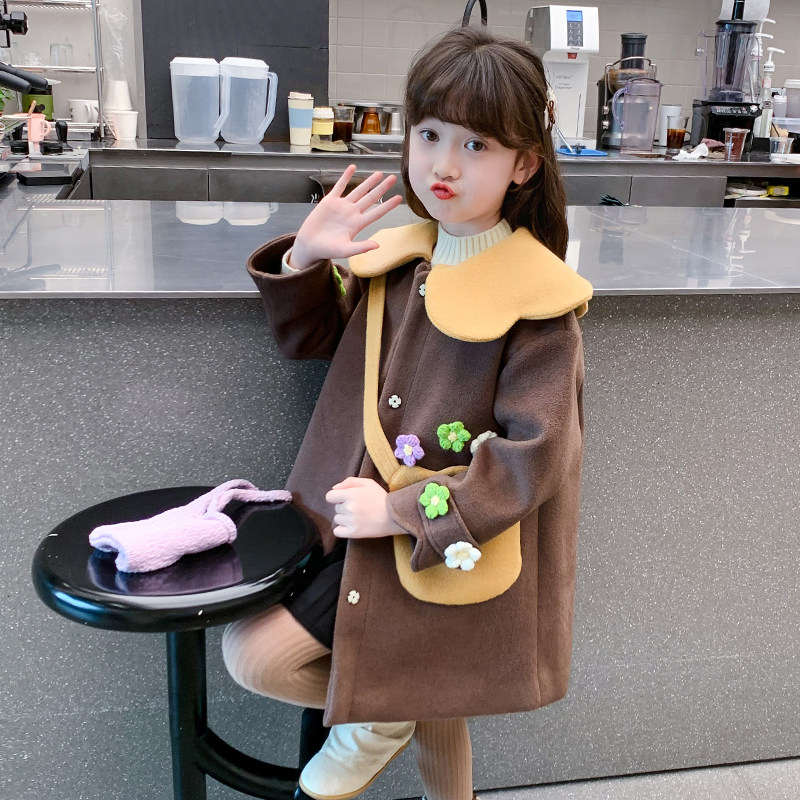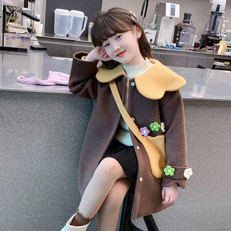 女童外套秋冬款2026新款儿童春装洋气时髦毛呢大衣中长款女孩风衣