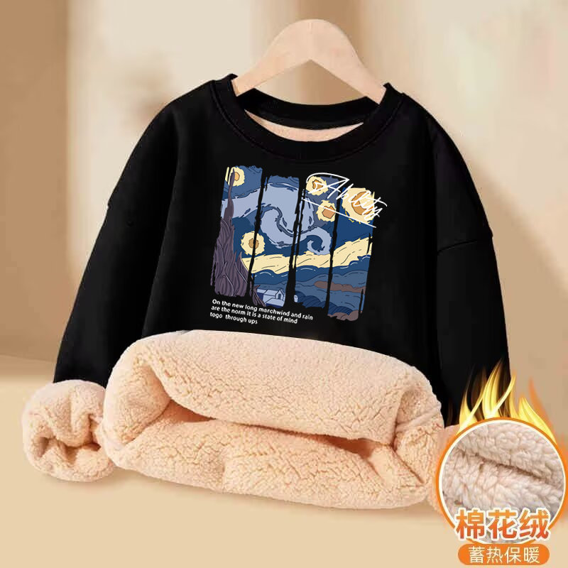 加绒卫衣男秋冬款加厚冬季青少年学生2025新款男款羊羔绒圆领上衣