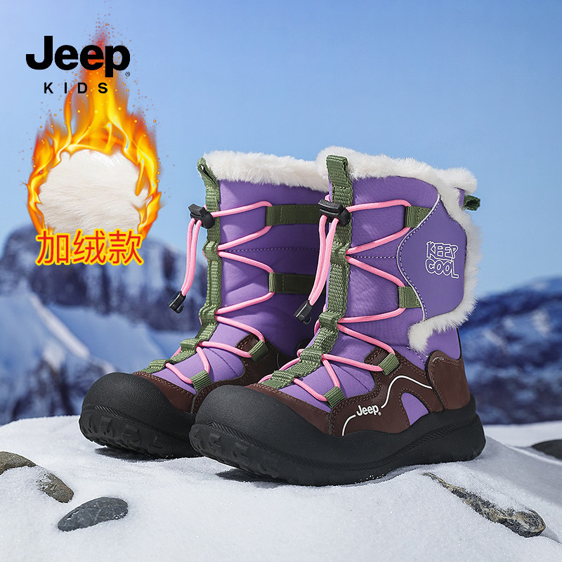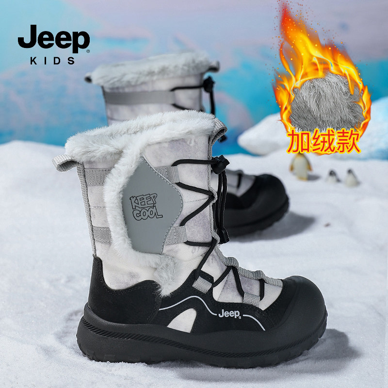 jeep儿童雪地靴冬季男童2026新款东北加厚防水靴子女童加绒大棉鞋