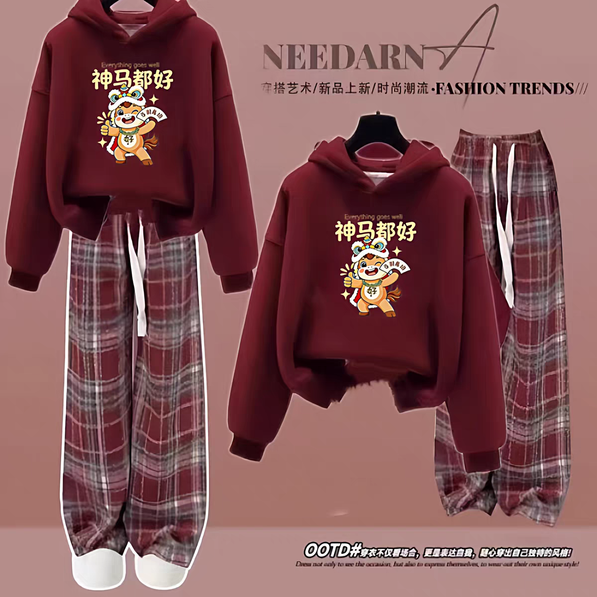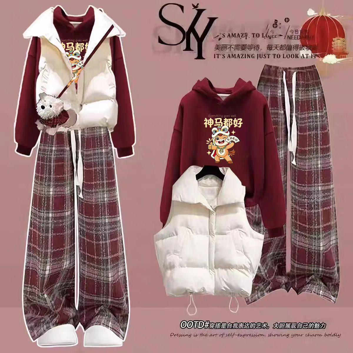 冬季大童女装12-15岁加绒卫衣三件套13初中学生14洋气过年套装16