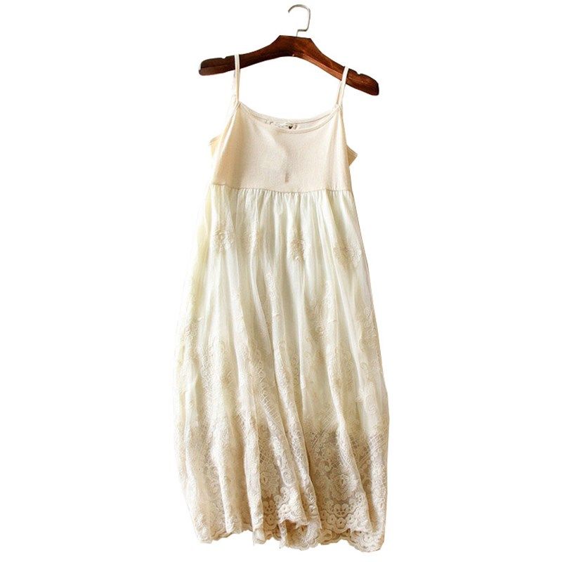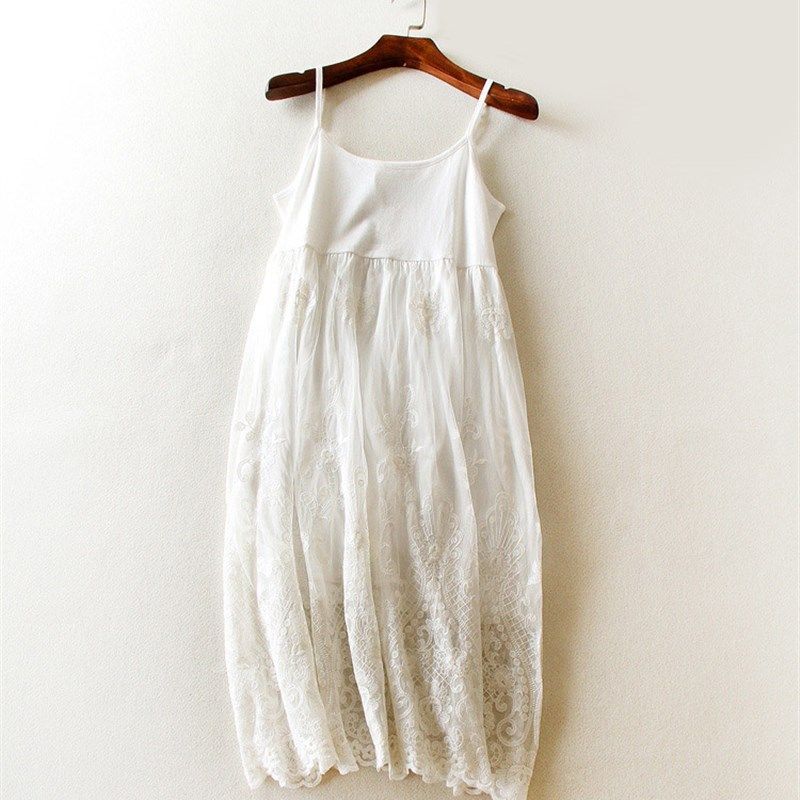 2021新款秋冬背心吊带连衣裙刺绣大花纱裙内搭蕾丝中长打底网纱裙