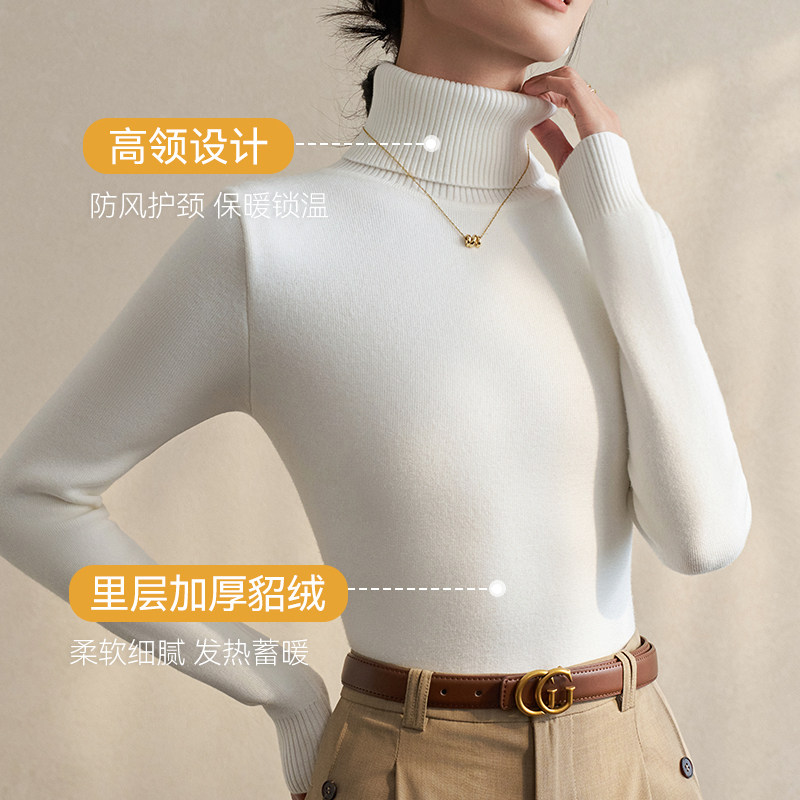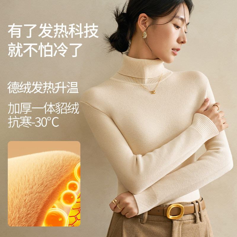 雅鹿半高领毛衣女款加绒德自发热打底衫加厚保暖上衣单件秋衣冬PB