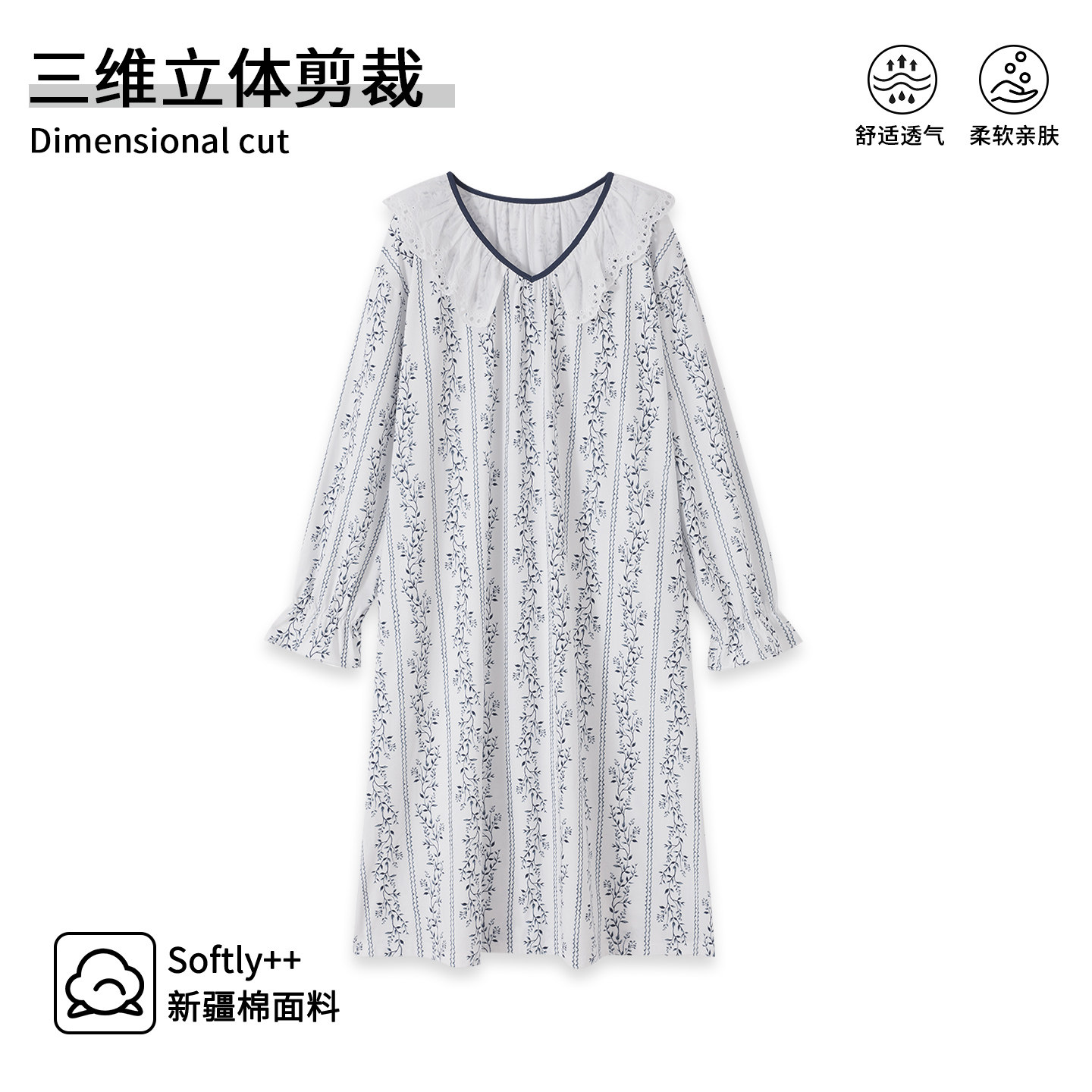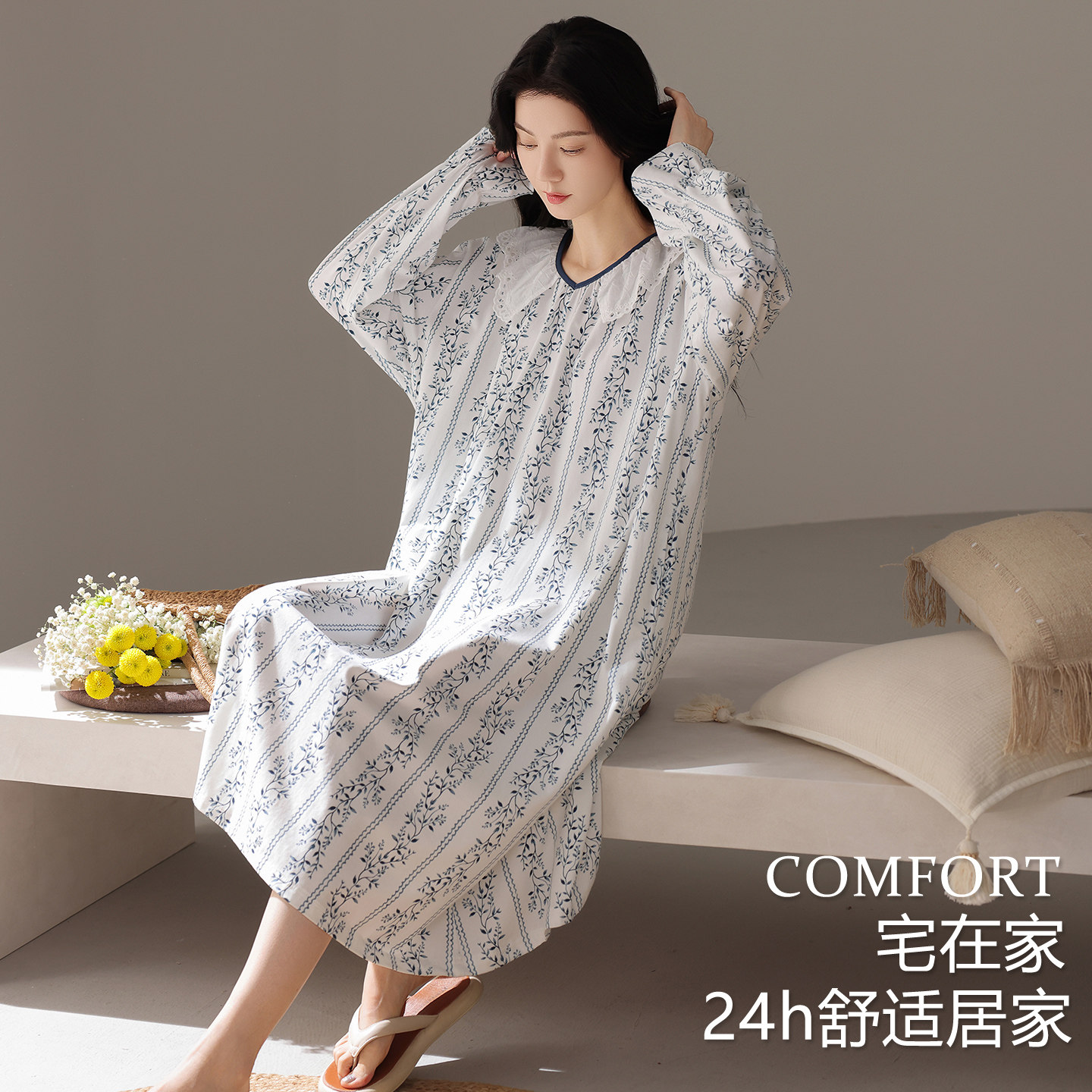 芬腾可安睡裙女款春秋季纯棉长袖大码美睡衣女款2026新款冬高级感