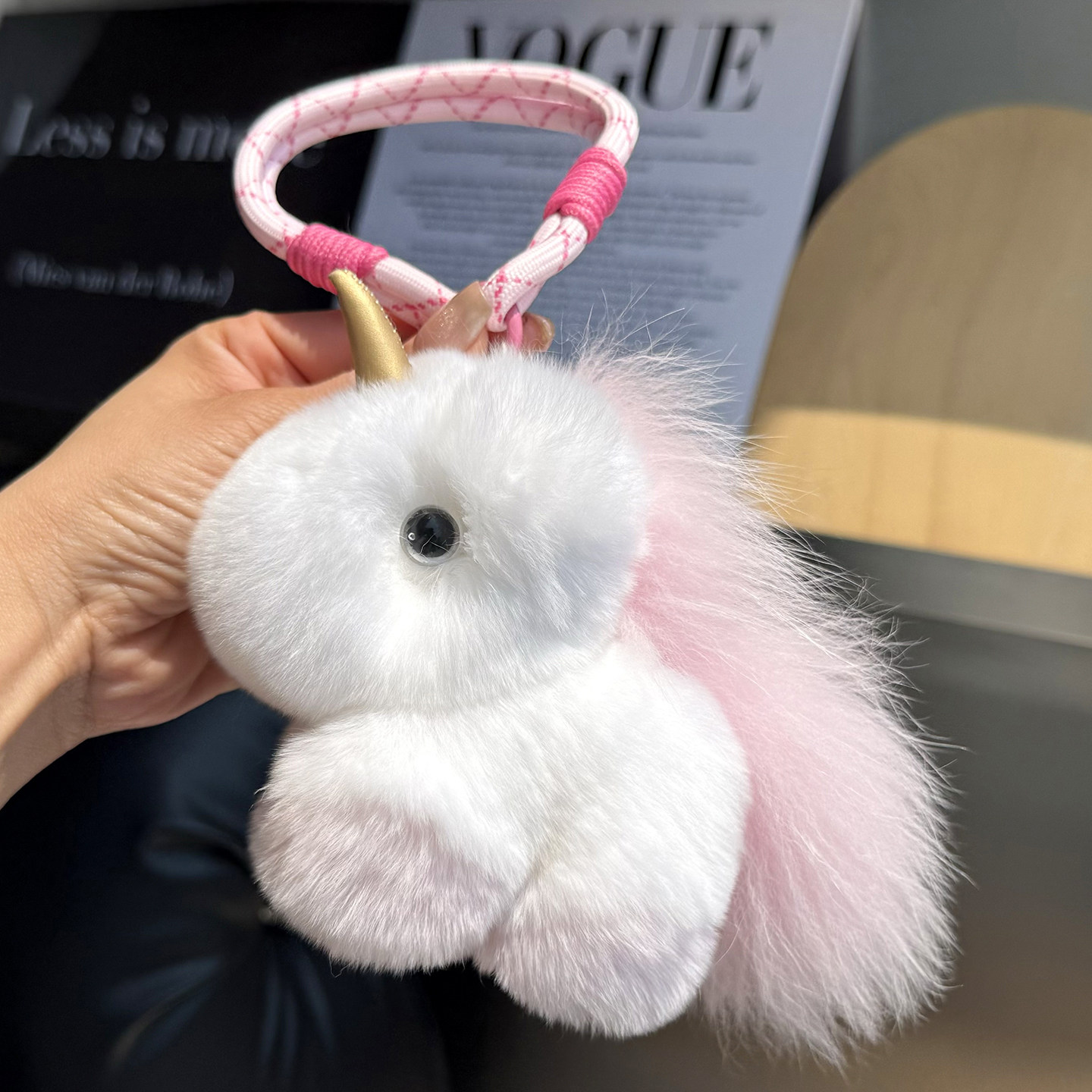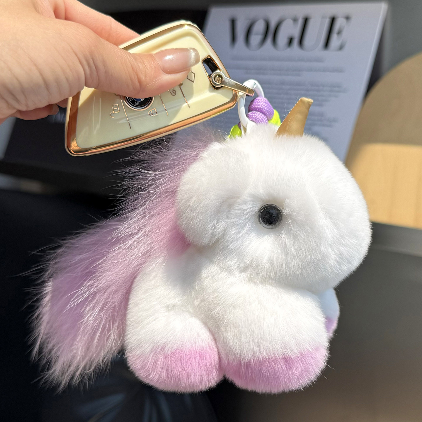 韩国ins可爱毛绒小马挂件獭兔毛独角兽包挂饰钥匙扣配饰生日礼物