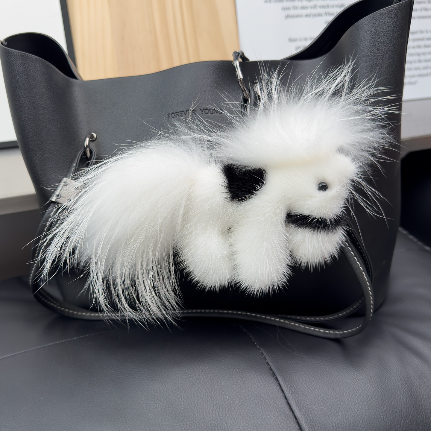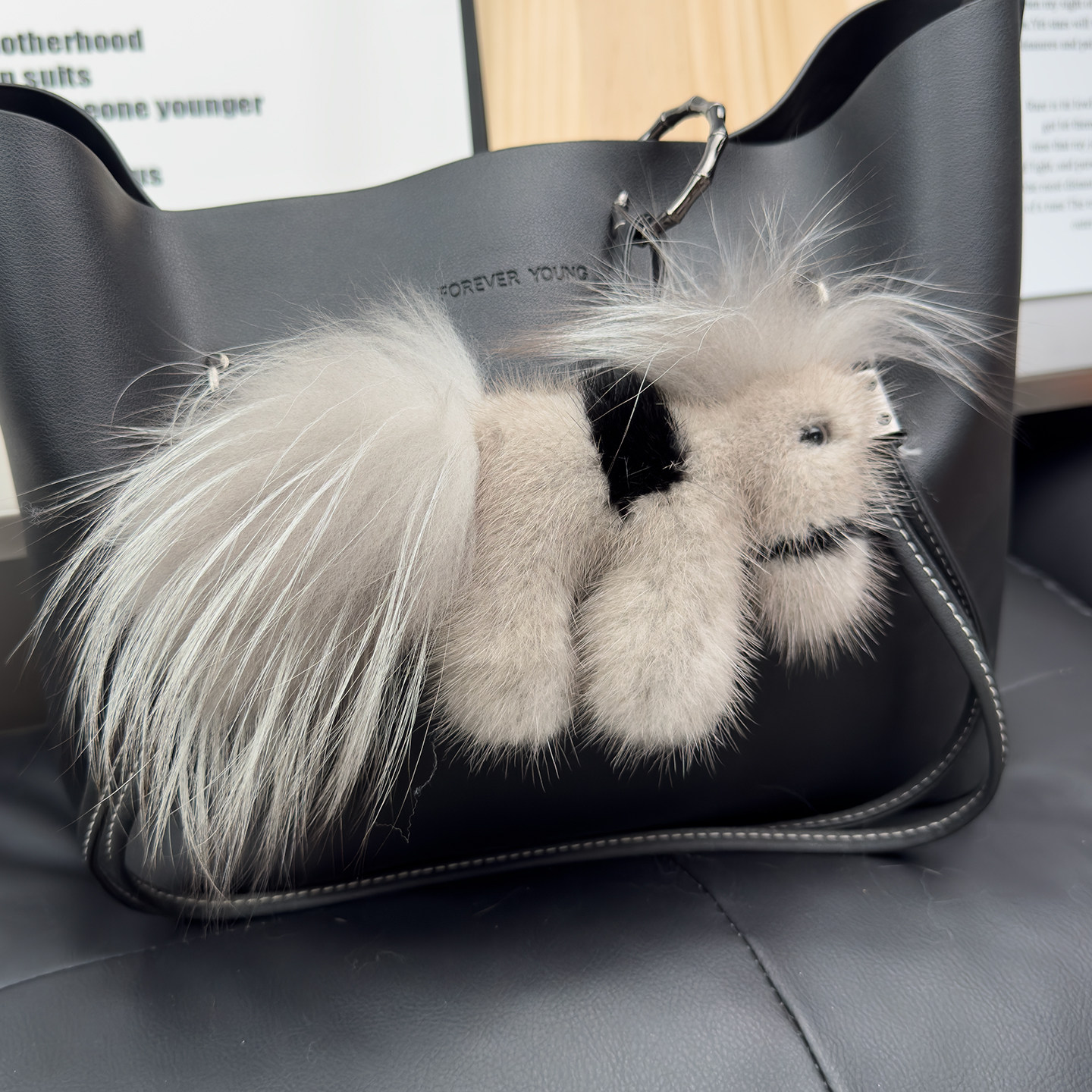 水貂毛可爱小马包包挂件ins时尚毛绒公仔玩偶皮草汽车钥匙扣挂饰