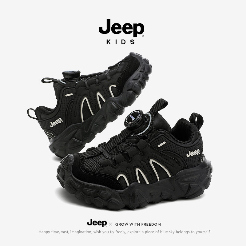 jeep儿童运动鞋男童女童秋冬加绒二棉软底防滑新款男孩轻便跑步鞋