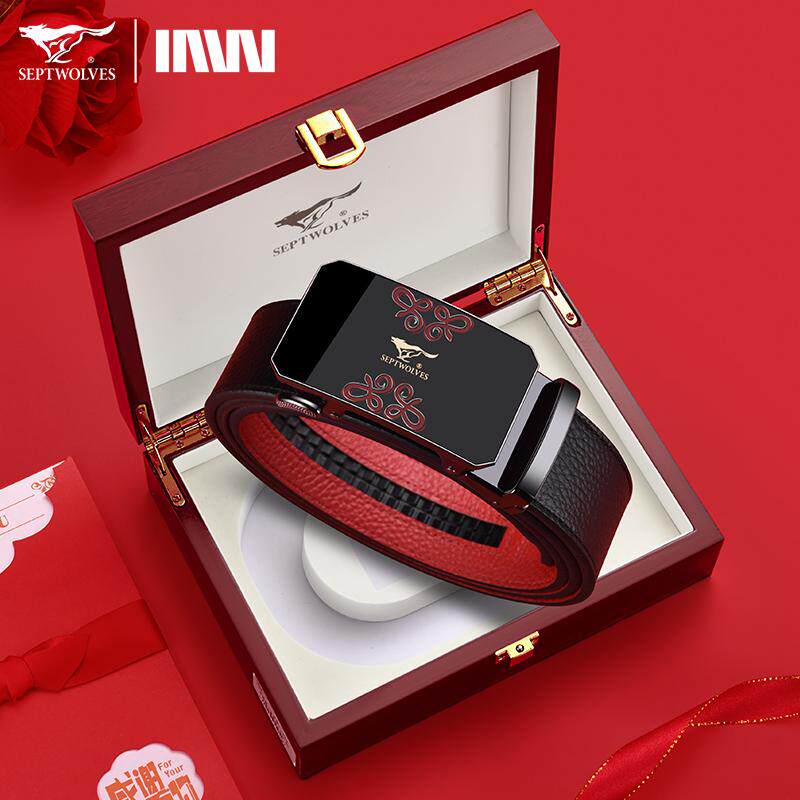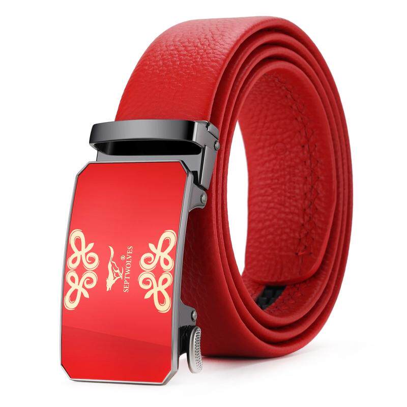 正品七匹狼本命年红腰带属马男真皮红色皮带头层牛皮男款裤带礼物