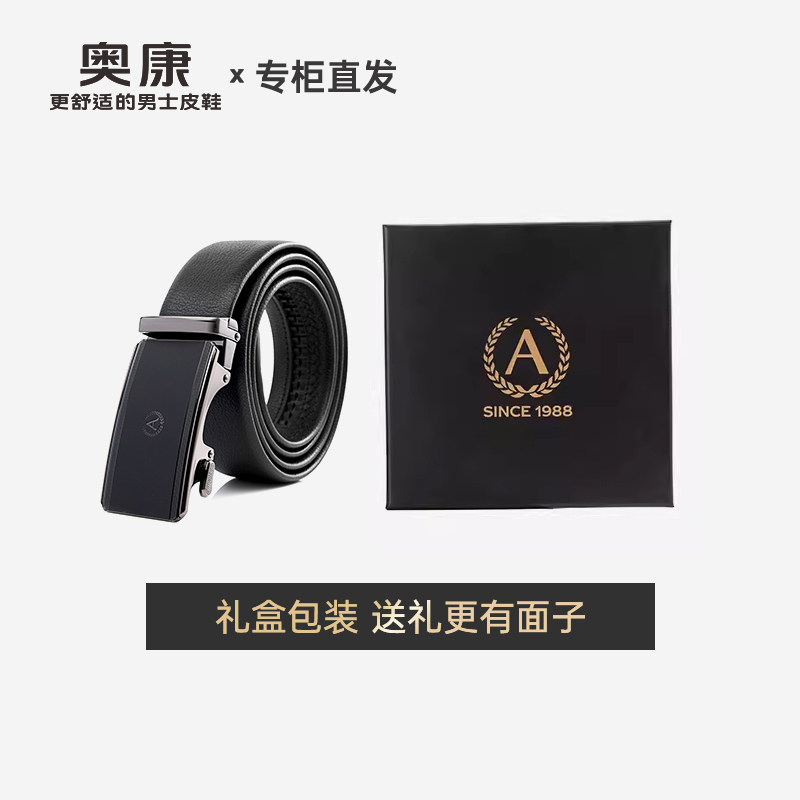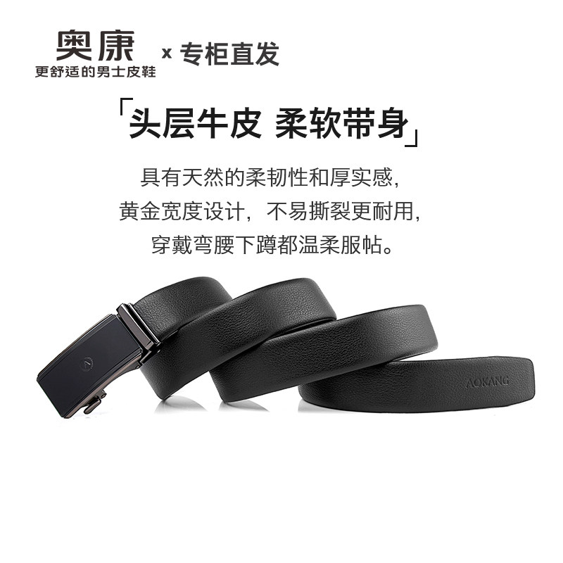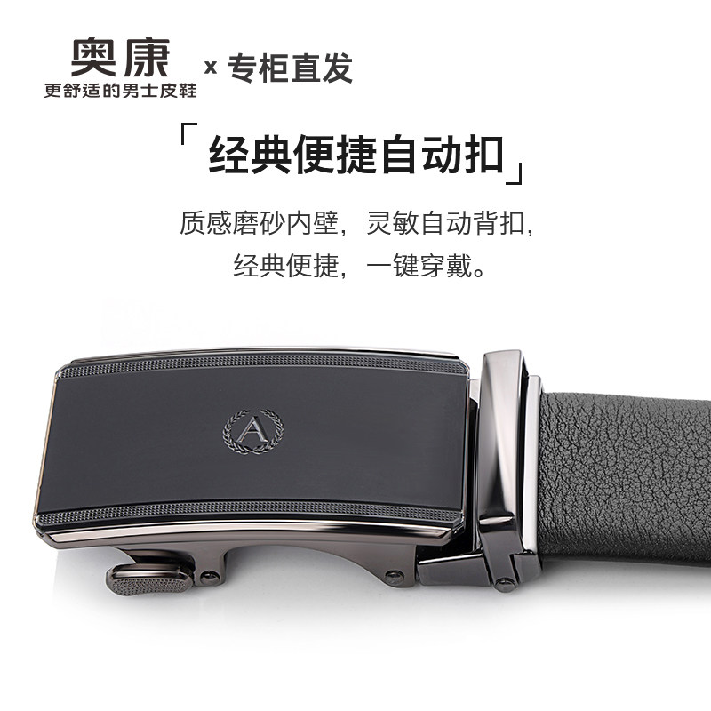 奥康头层牛皮皮带男款真皮休闲自动扣腰带男士裤腰带正品高档品牌