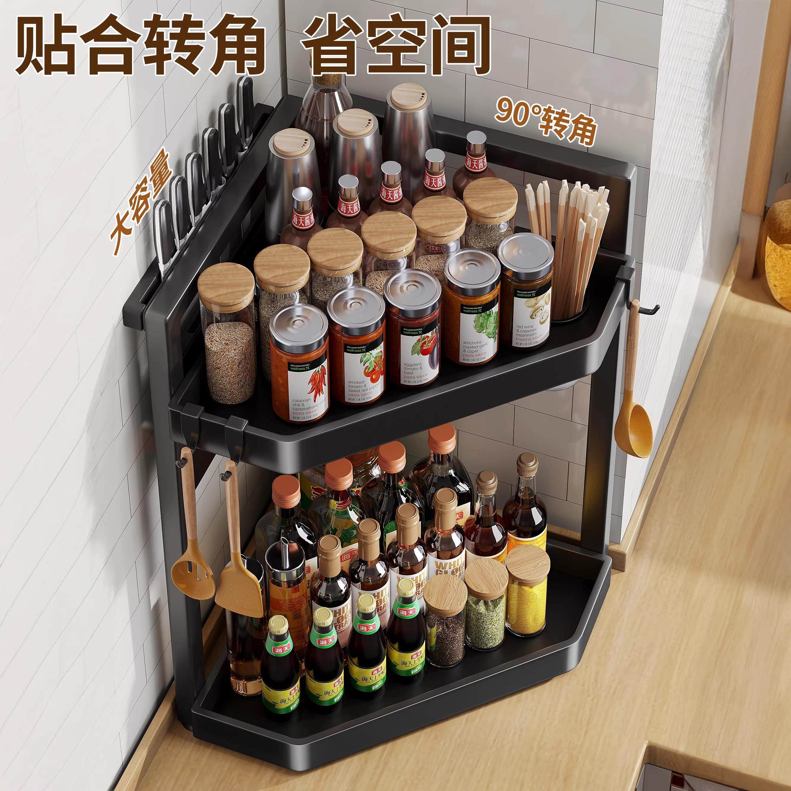 厨房置物架台面转角多功能三角调料品刀筷一体架子墙角调味罐收纳