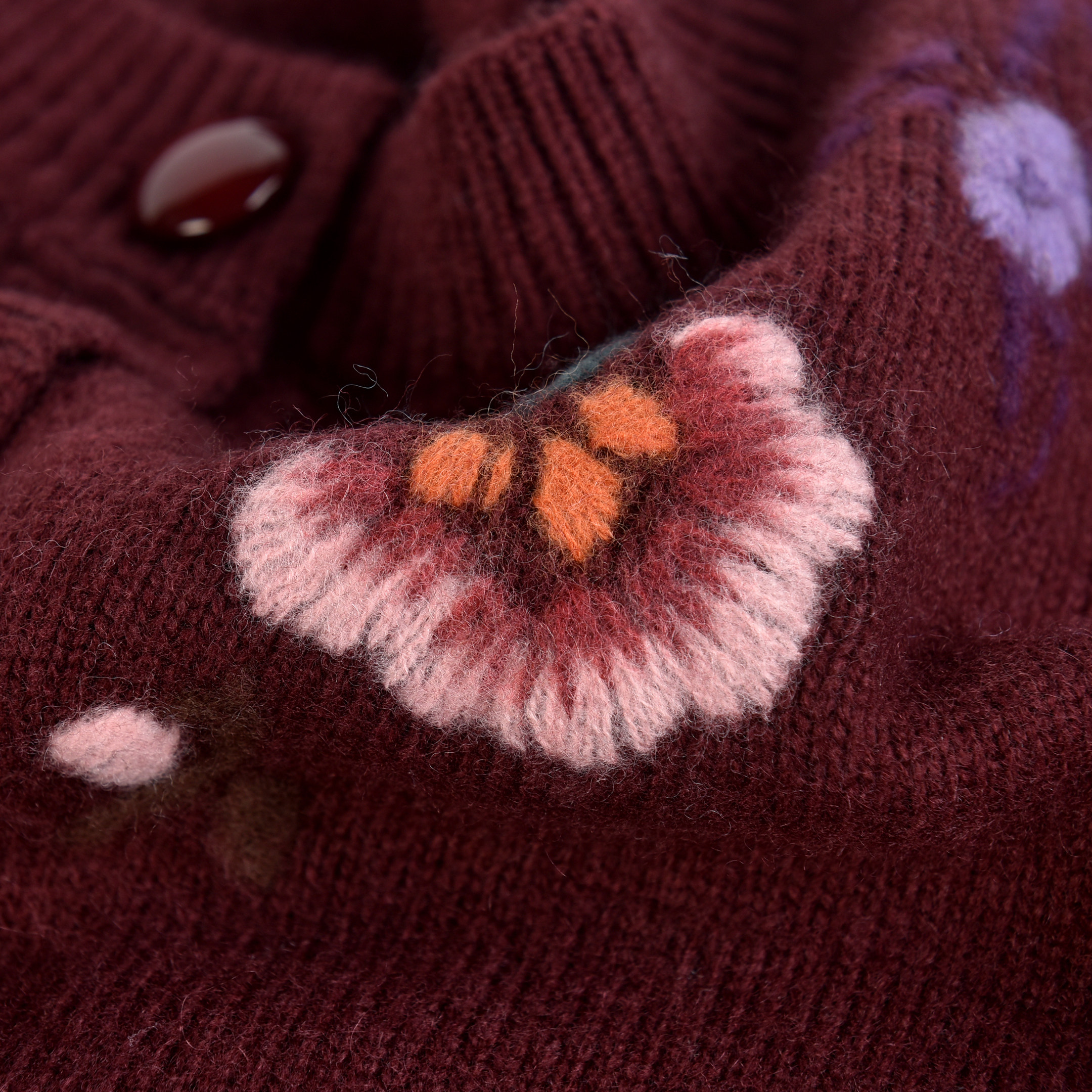 中老年绣花针织开衫女加厚羊毛衫秋冬新款单排扣妈妈气质毛衣外套