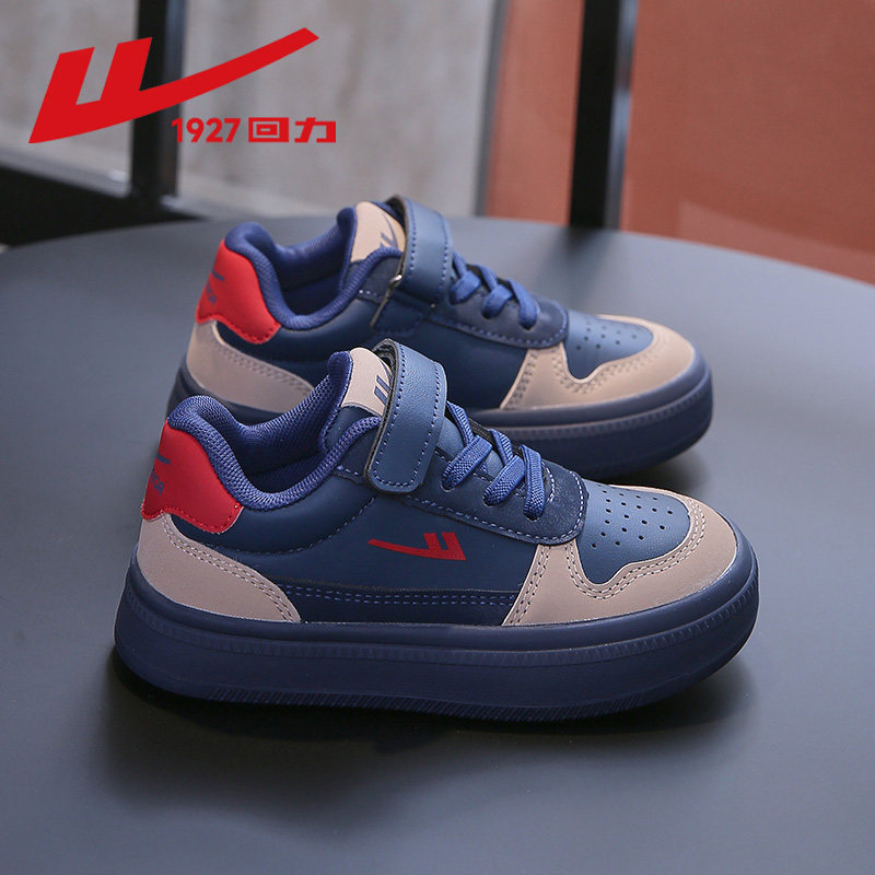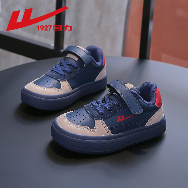 回力男童运动鞋春秋2026新款男孩低帮板鞋皮面防水中大童儿童鞋子