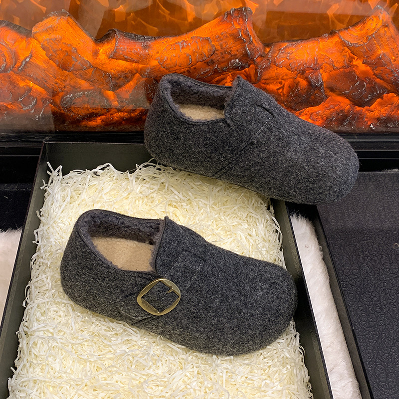 女童2026新款秋冬季保暖软底毛绒勃肯鞋女搭扣一脚蹬内增高厚底鞋