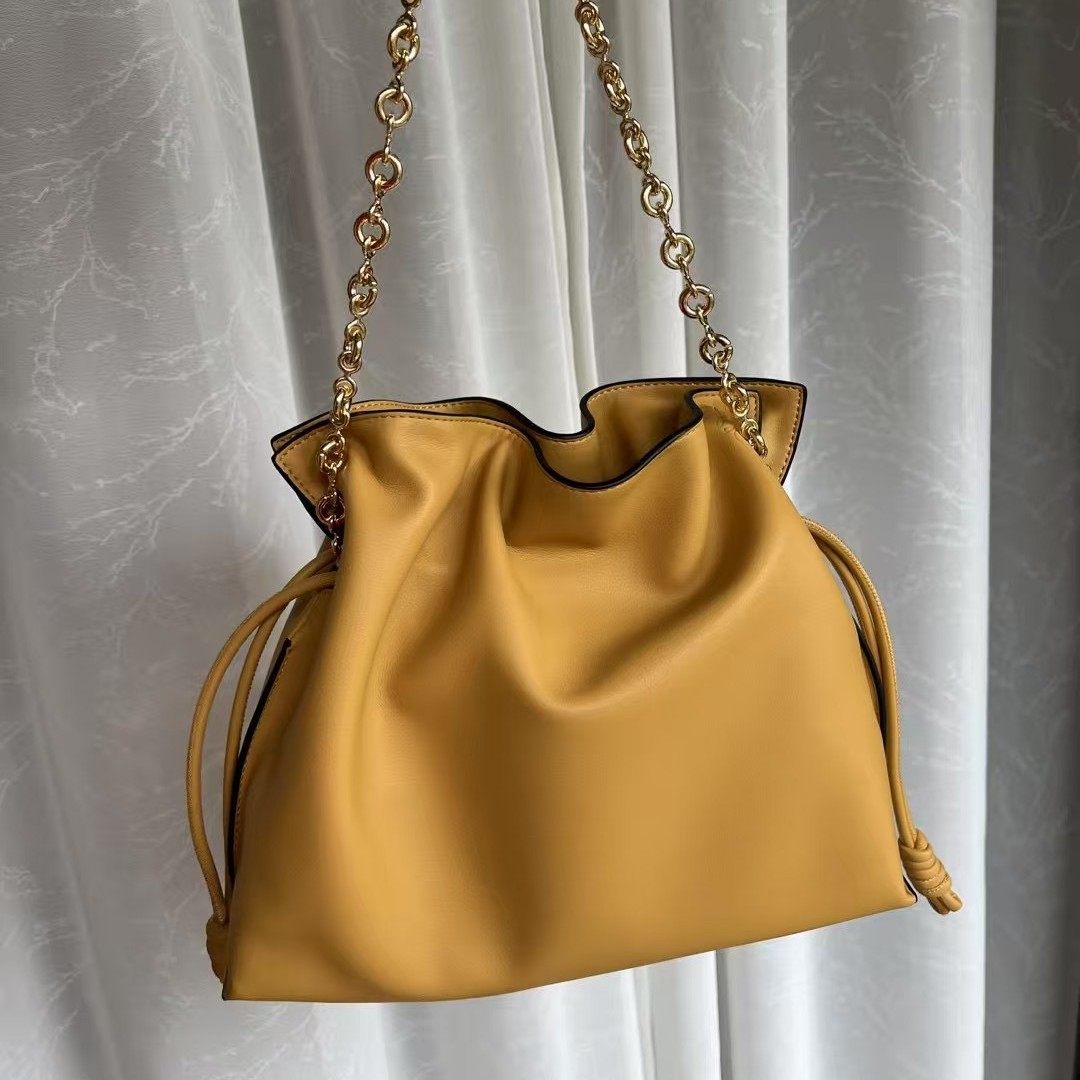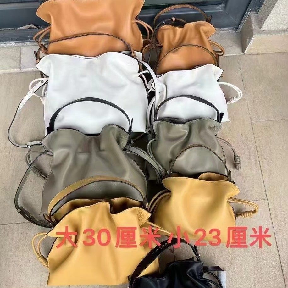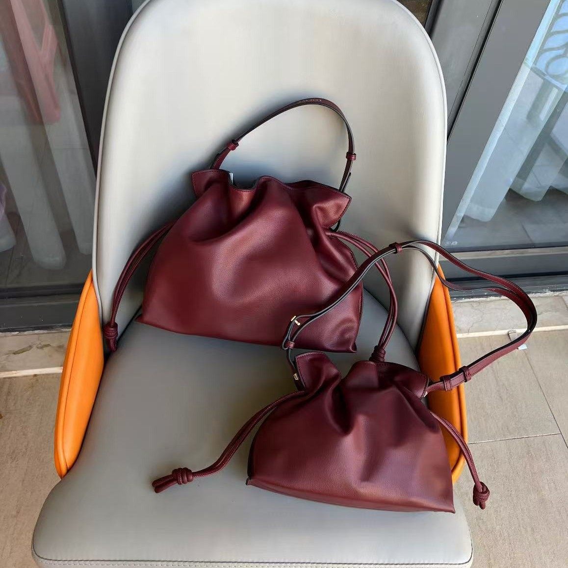 罗家软皮福袋包单肩斜挎水桶包抽绳包女款真皮云朵包红色白色牛皮