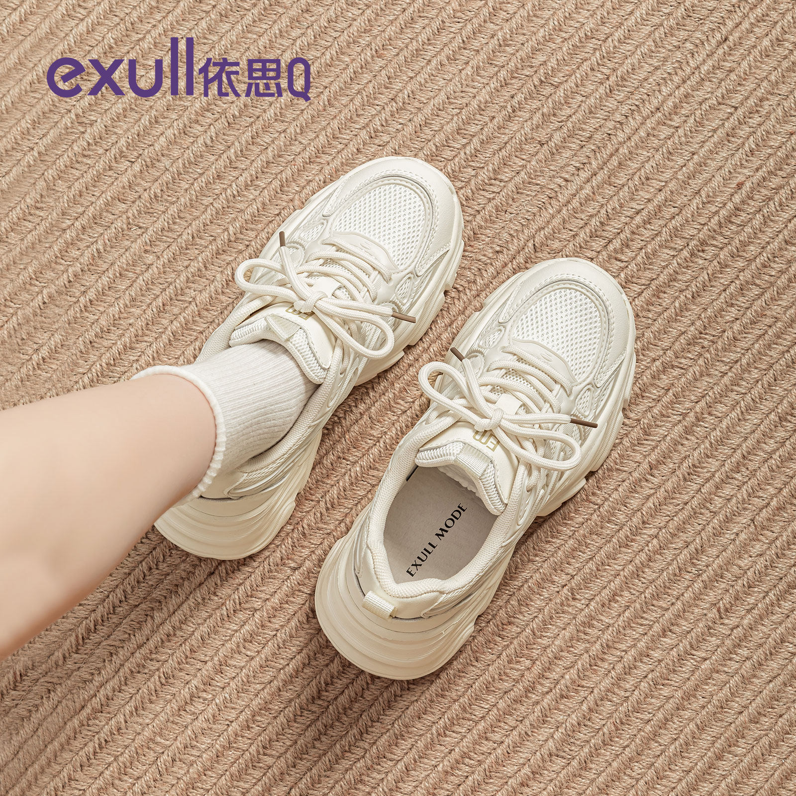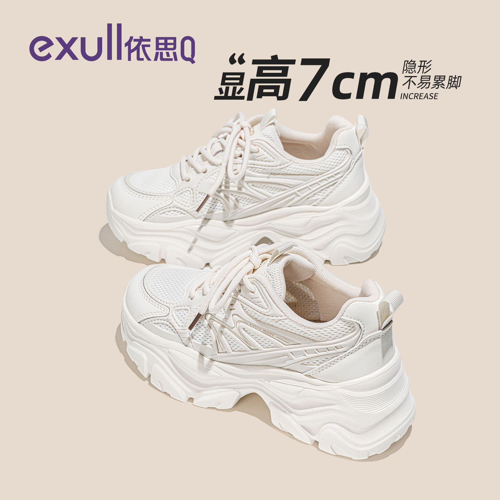 依思q厚底老爹鞋女款春季2026新款增高女鞋白色超轻百搭运动鞋子