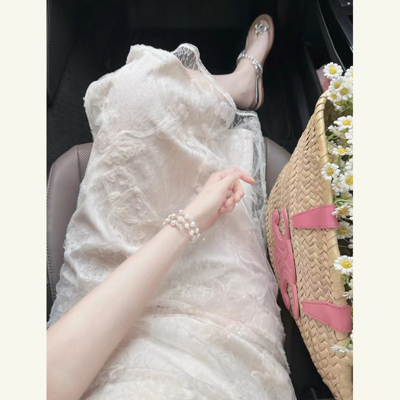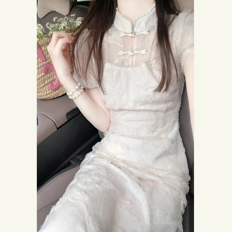 清仓!新中式国风改良旗袍白色连衣裙女夏高级感修身显瘦蕾丝长裙