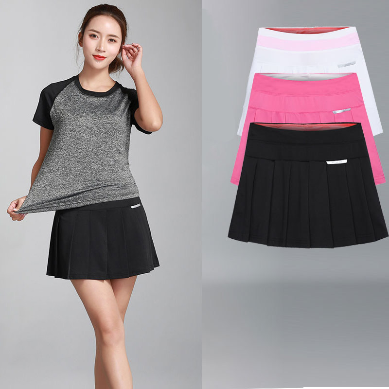 半身裙女运动百褶裙黑色白色速干B裙裤跑步瑜伽健身羽毛球网球短