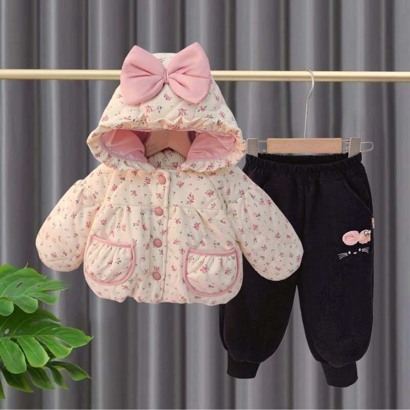 女童套装冬季2026新款洋气儿童冬装棉衣女宝宝时髦加绒加厚两件套