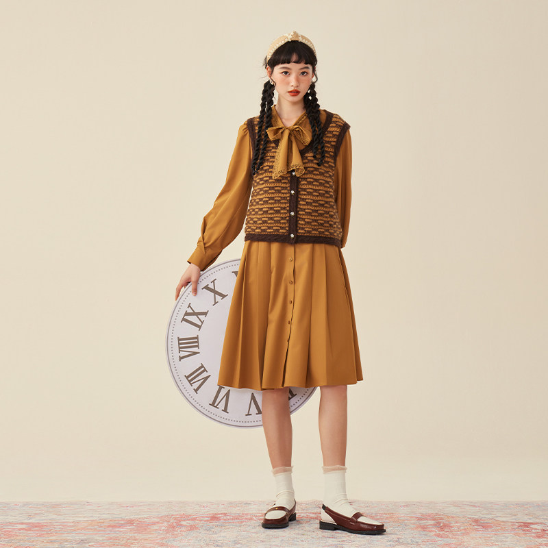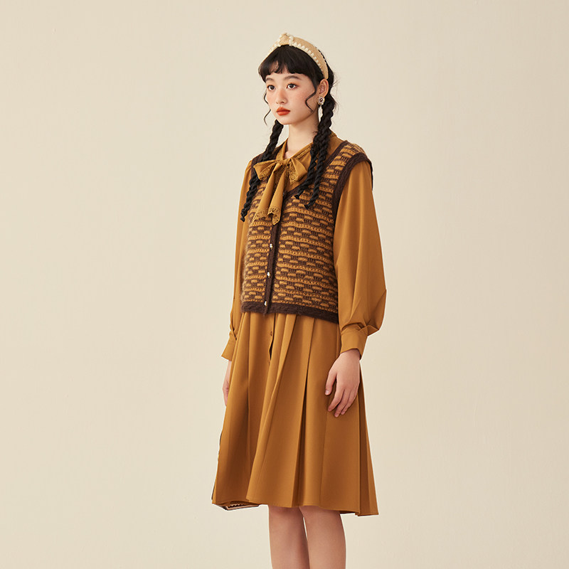 【昕怡粉丝专享】pit复古高级感橘色收腰显瘦长袖连衣裙女秋