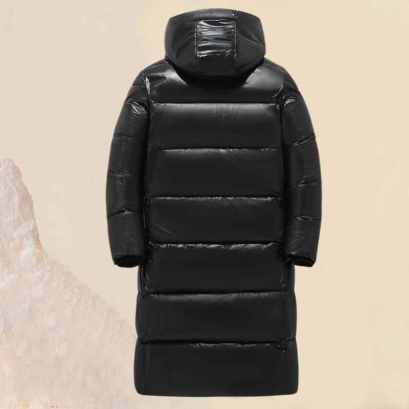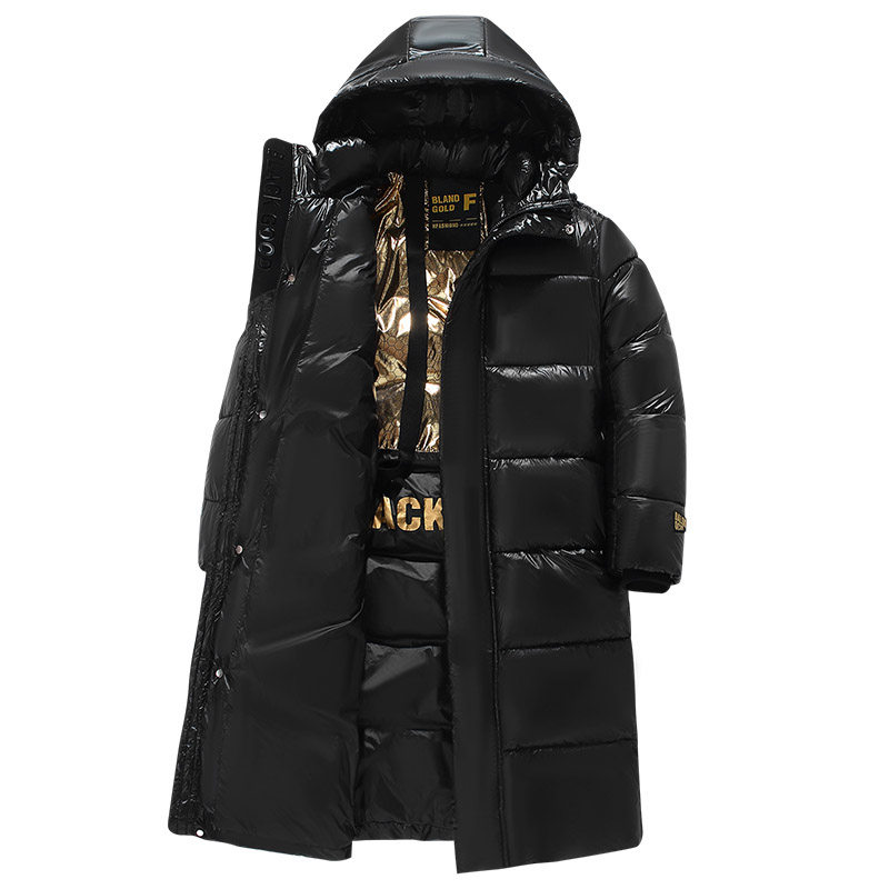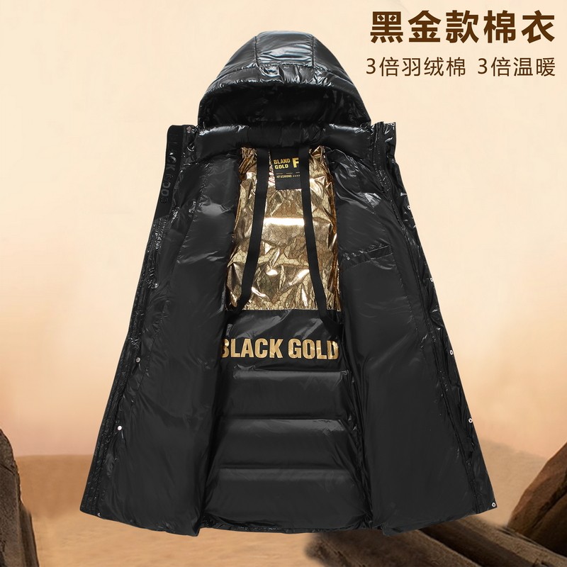 青少年中长款亮面带帽羽绒棉服男装黑金加厚防寒保暖初中学生棉衣