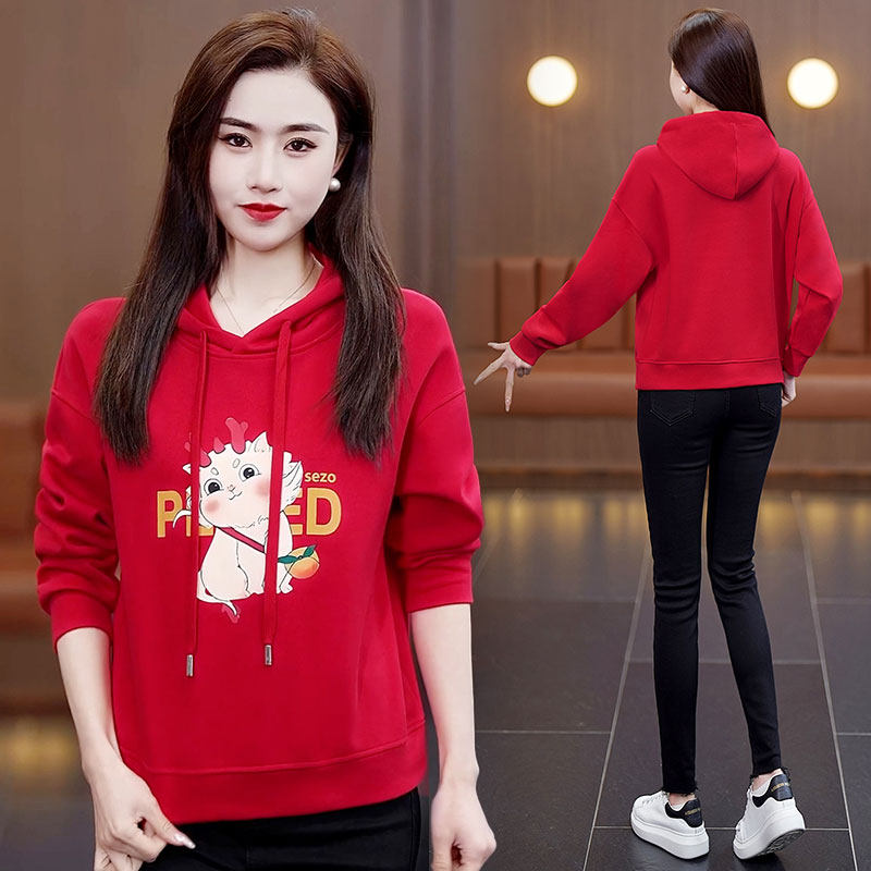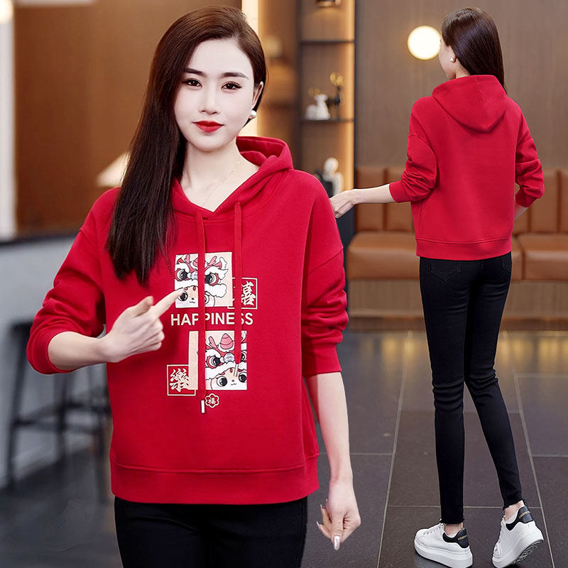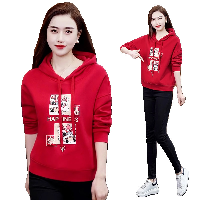 红色卫衣女士连帽2025今年流行新款早春爆款高端休闲洋气减龄外套