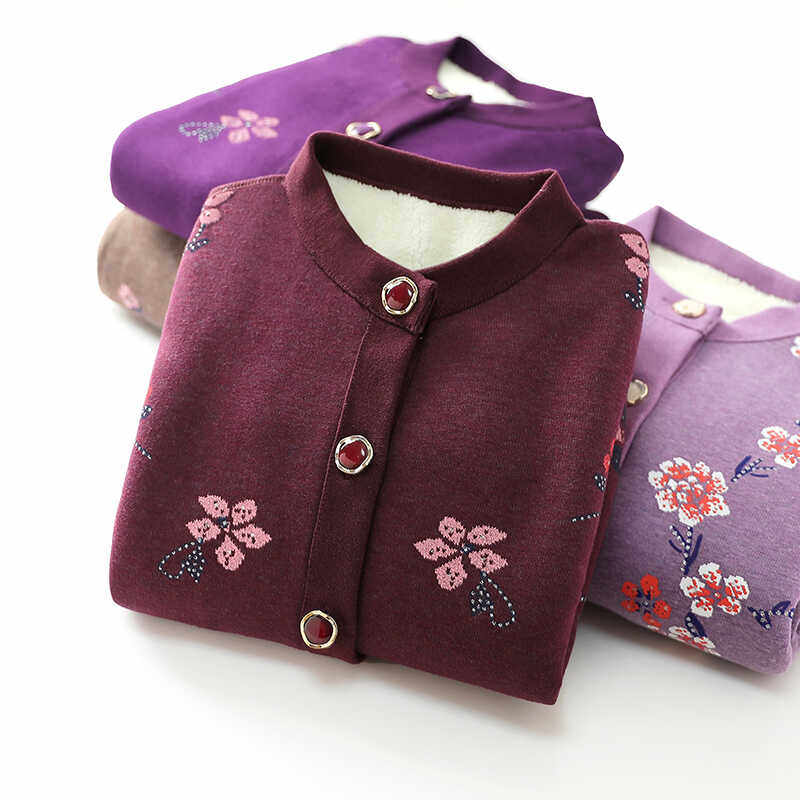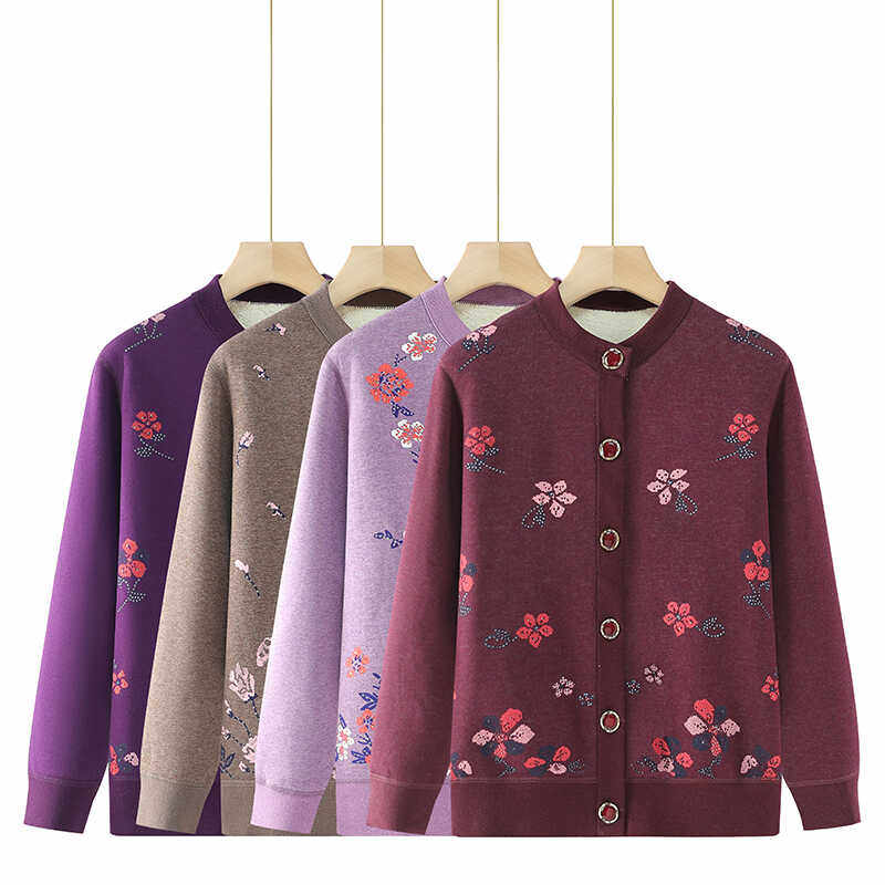 中老年人秋冬款外套女奶奶加绒针织衫新款妈妈开衫毛衣老太太衣服