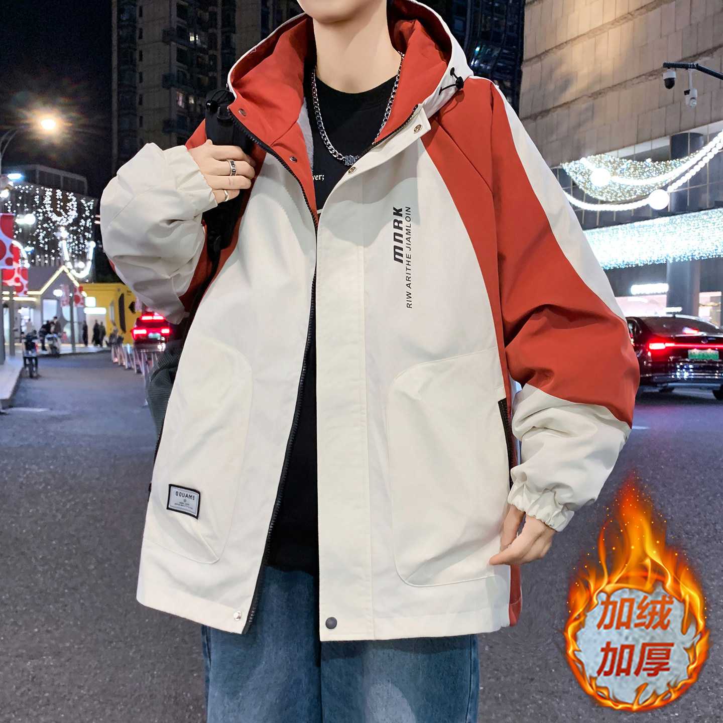 秋冬款加绒外套男孩初中学生加厚冲锋衣青少年大童冬装夹克棉服潮