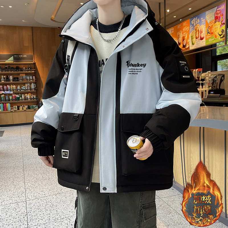 欧洲站冬款棉衣外套男孩青少年初中学生加绒加厚冲锋衣服大童冬装