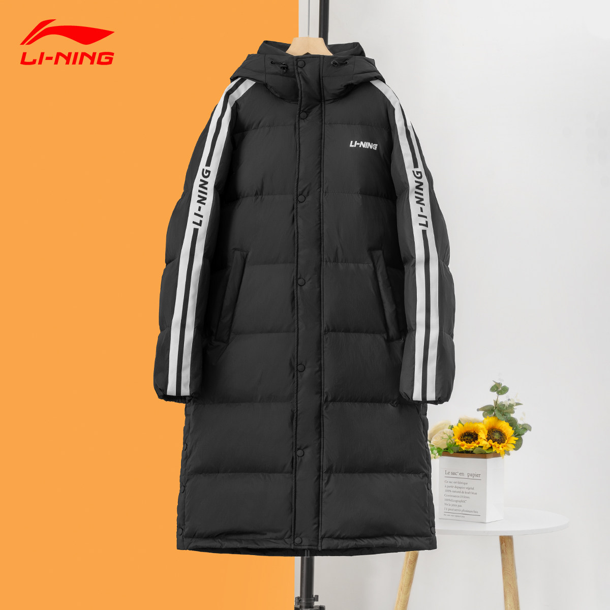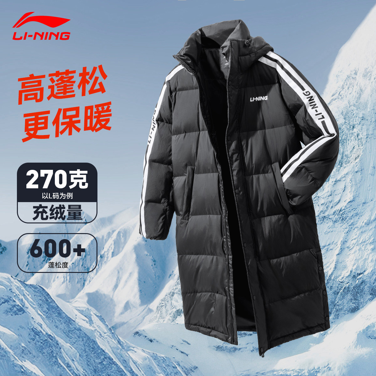 李宁长款羽绒服男款青少年加厚2025冬季新款保暖连帽防寒运动外套