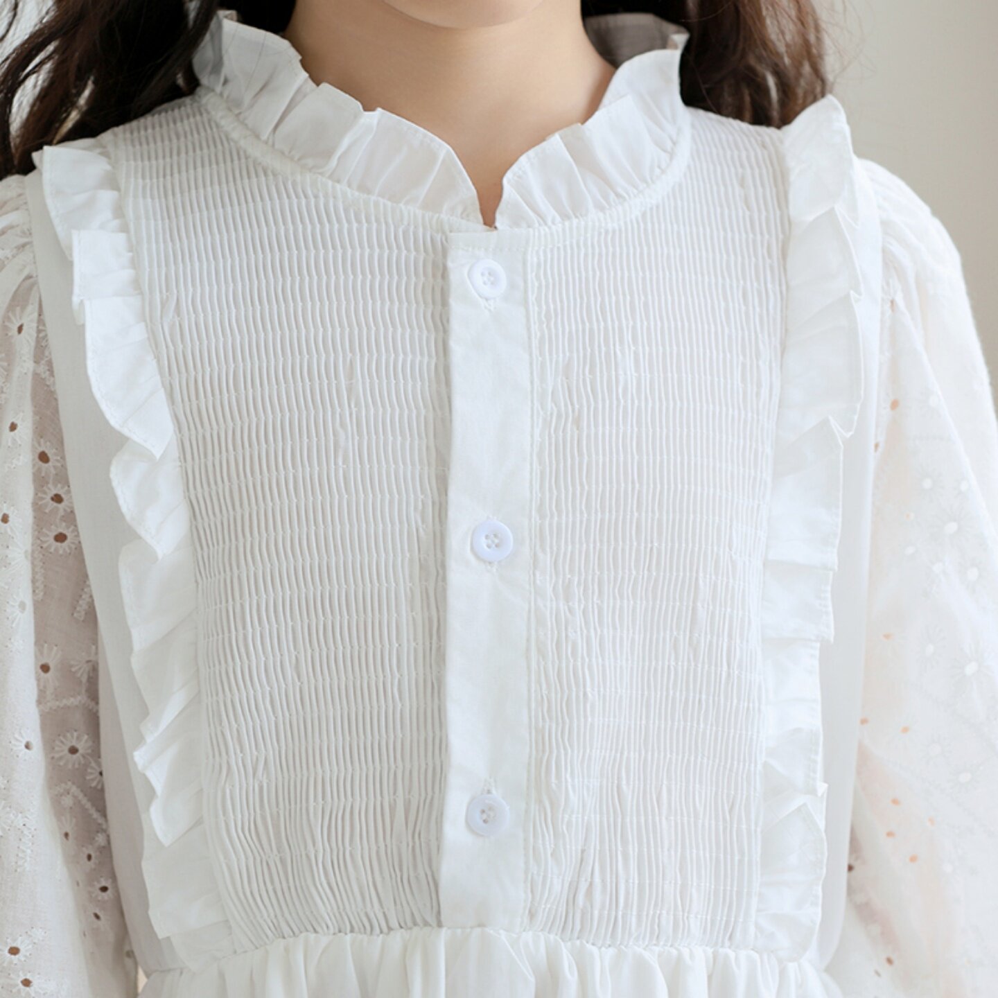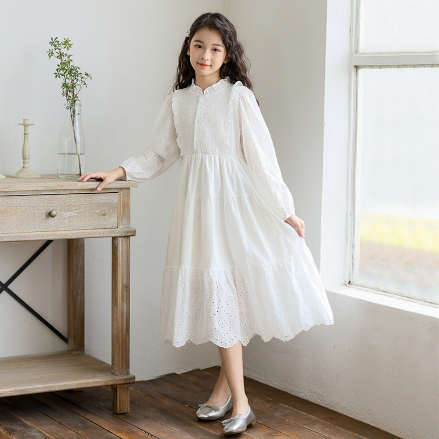 韩版童装女童连衣裙2026秋新款中大童白色蕾丝裙子女孩生日公主裙
