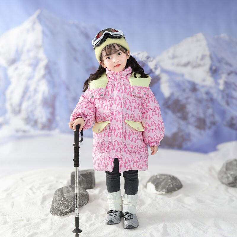 【高充鹅绒】女童满印鹅绒羽绒服冬季2026新款加厚女宝中长款外套