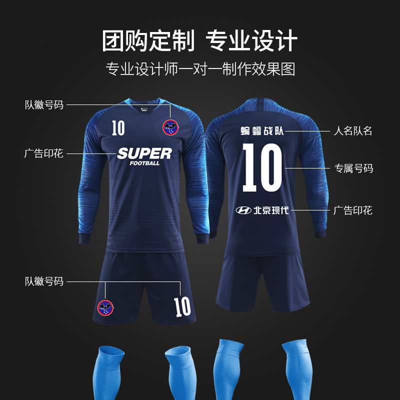 长袖足球服套装男定制成人秋冬季儿童训练服法国队中国队球衣印字