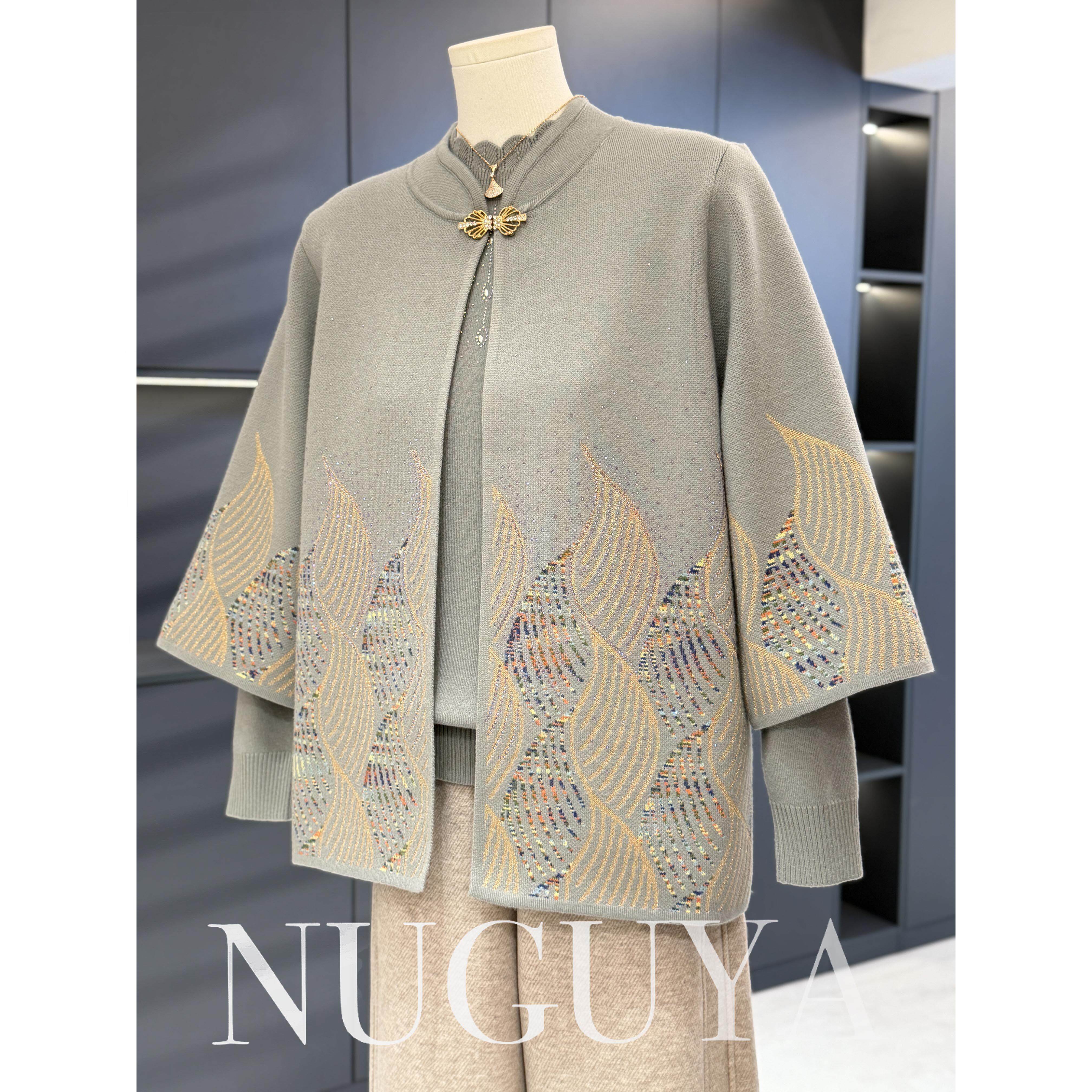 中老年针织衫女两件套奶奶装冬装新款时尚婆婆装大码妈妈毛衣套装
