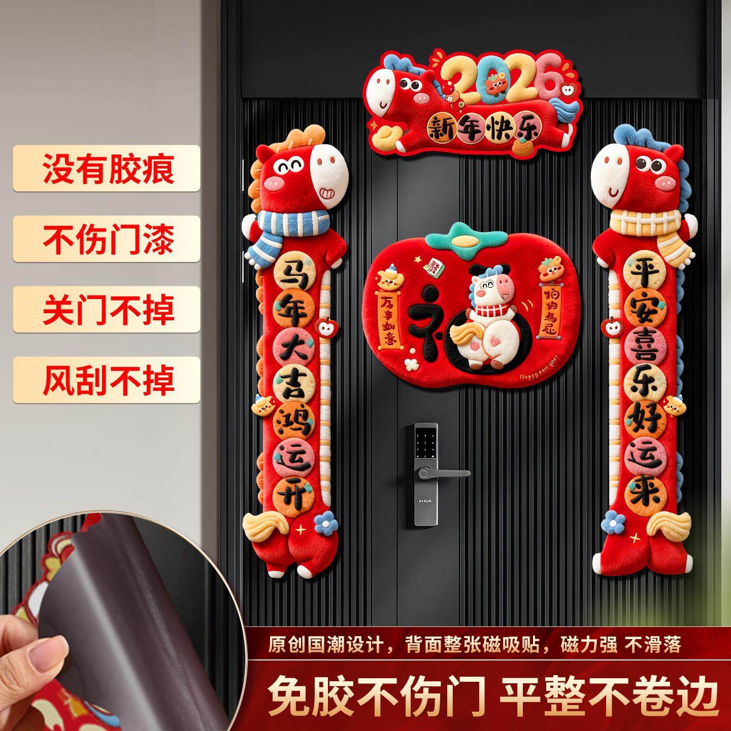 对联春联2026年新款马年创意磁吸对联新年福字春节入户门联装饰品