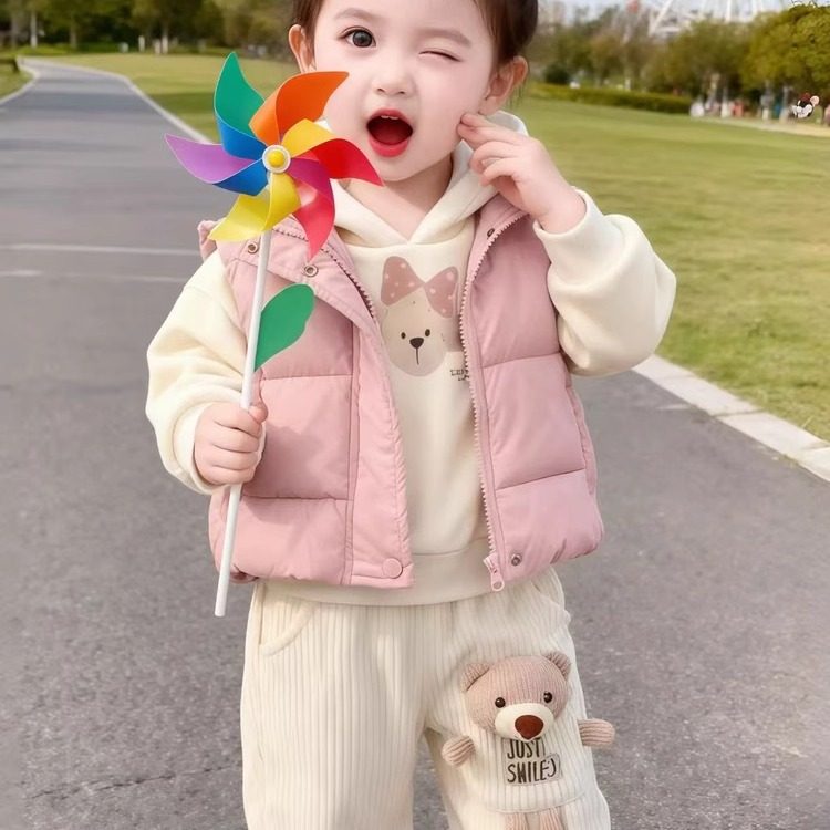 女童新款2025套装冬季加厚加绒洋气宝宝冬装儿童卫衣马甲三件套