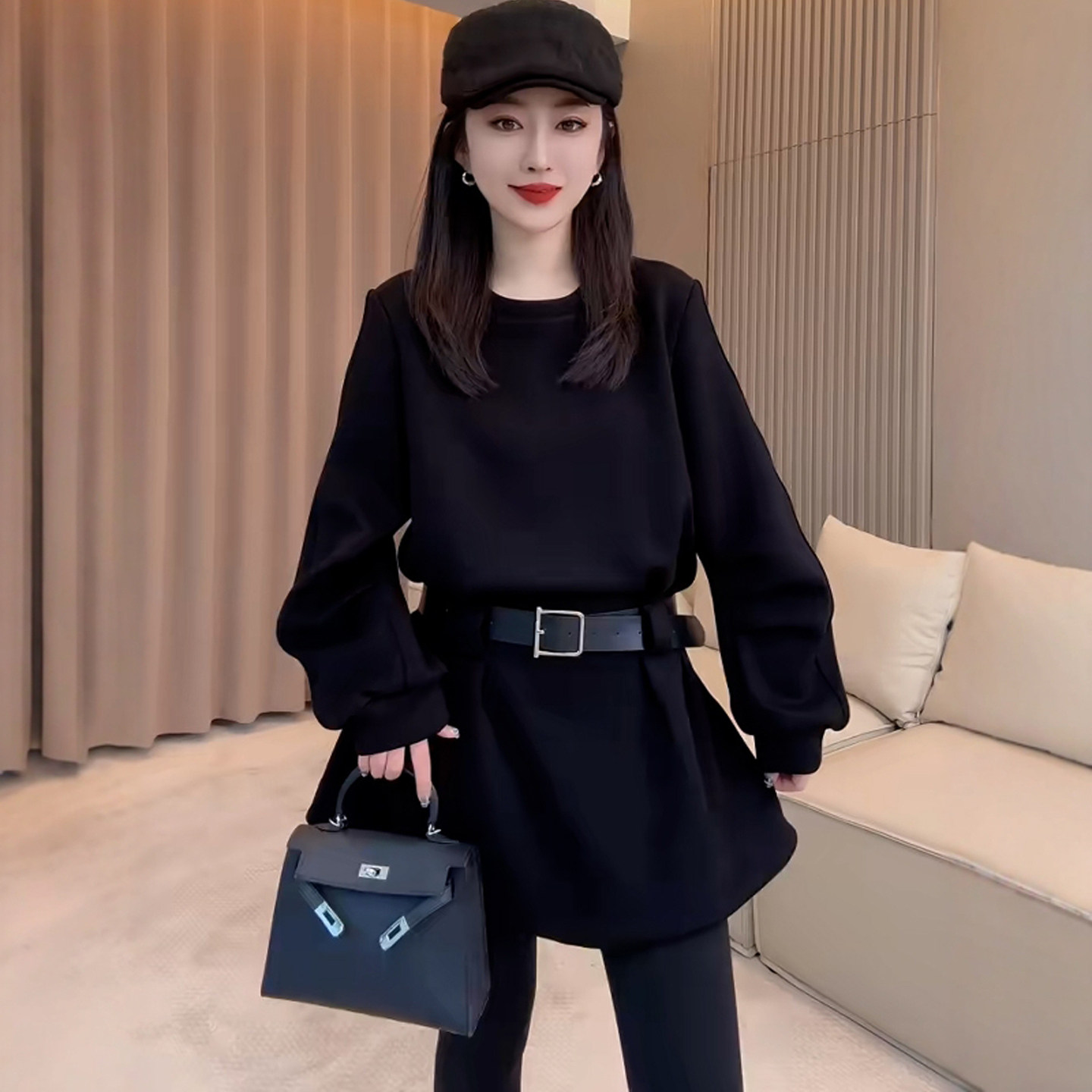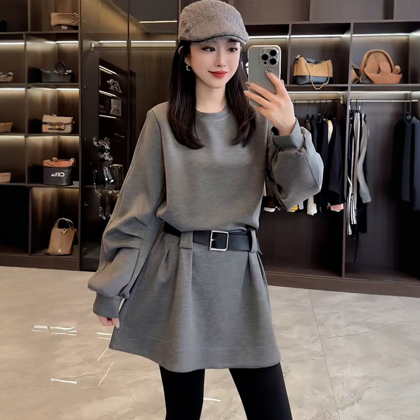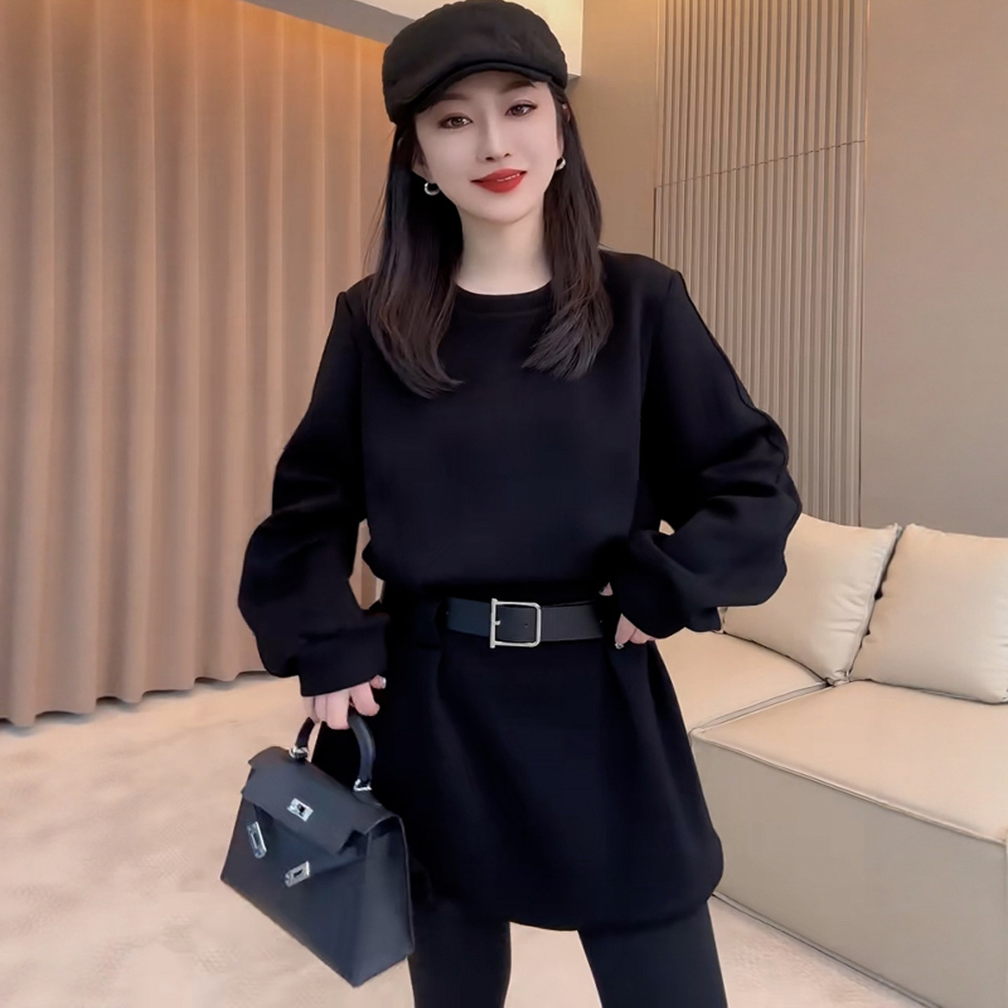 欧洲站送腰带长袖卫衣裙女秋冬2025新款小个子收腰连衣裙短款裙子