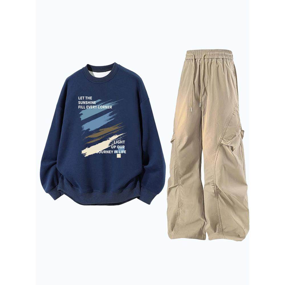 春秋青少年圆领卫衣套装男生潮流痞帅搭配一套帅气时髦穿搭衣服男