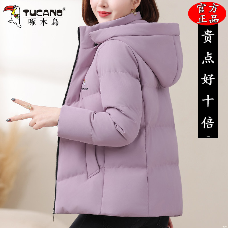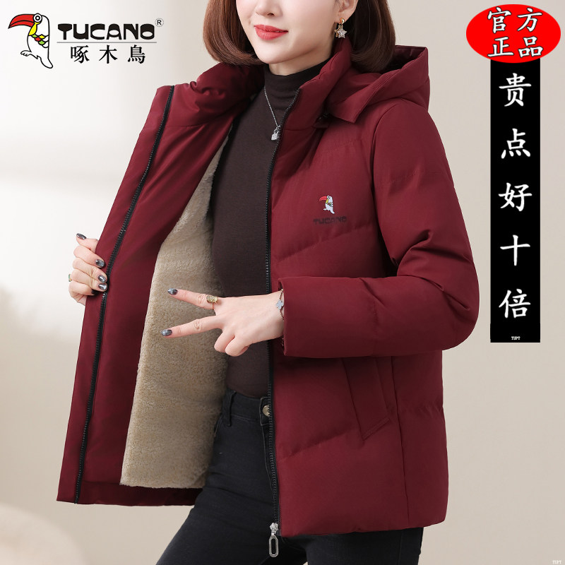 啄木鸟加绒加厚棉衣女士2025新款妈妈冬装时尚洋气小棉袄短款外套