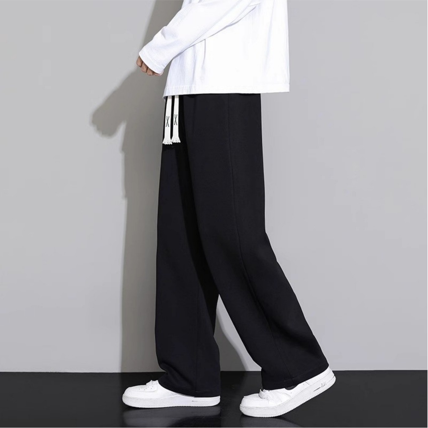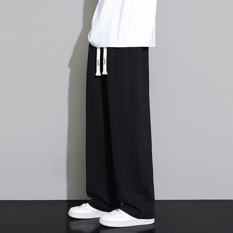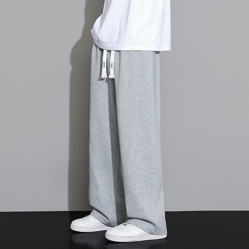 加绒裤子男生秋冬季加厚保暖直筒运动卫裤男款宽松垂感黑色休闲裤