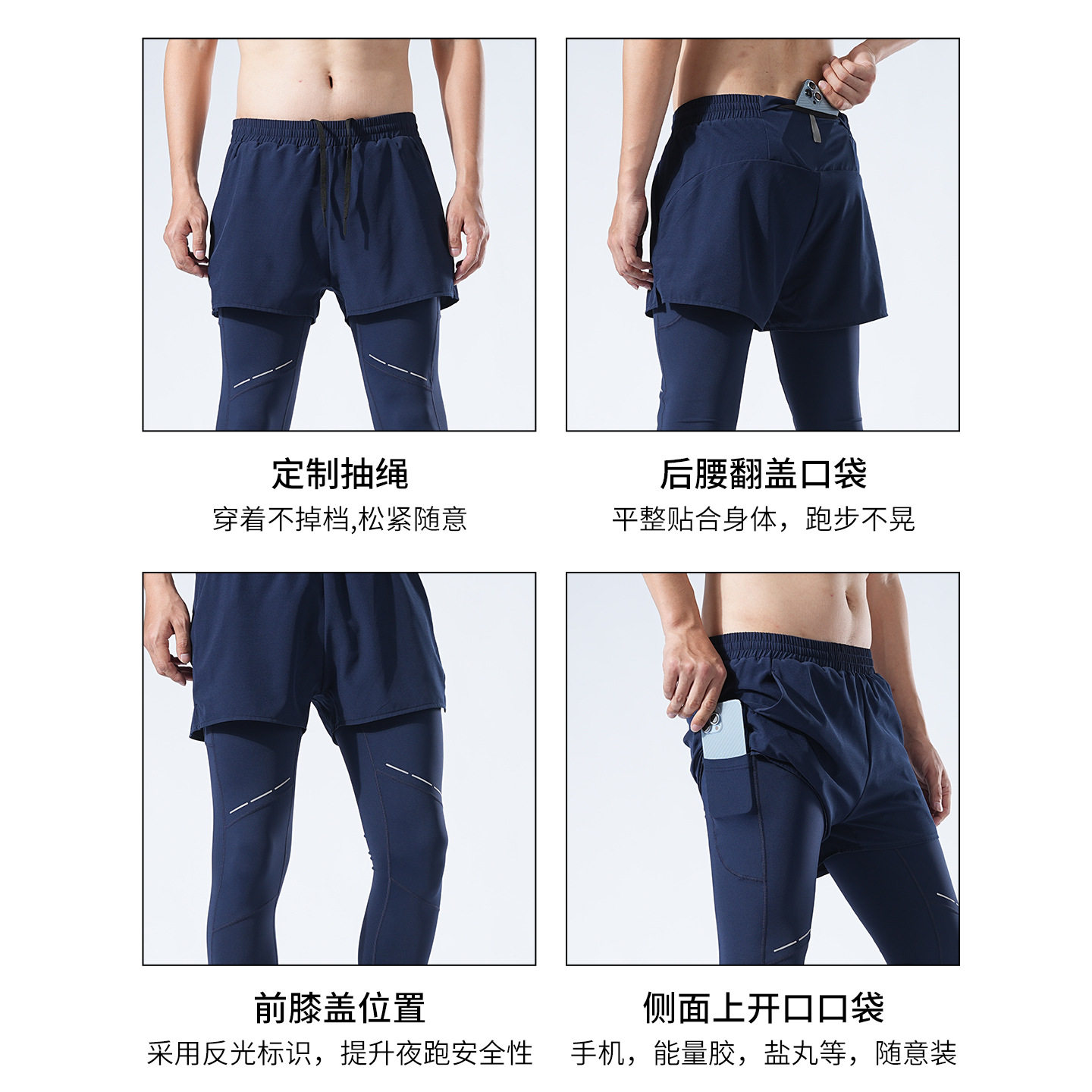 加绒跑步长裤男女马拉松压缩裤假两件速干运动健身紧身裤可放手机