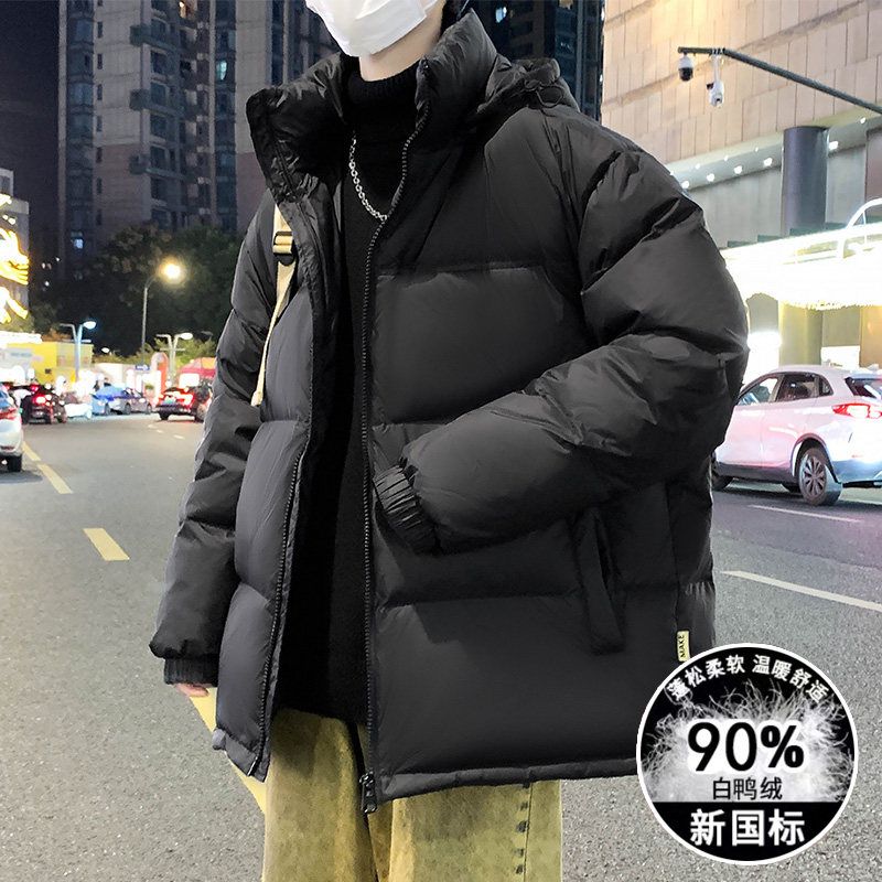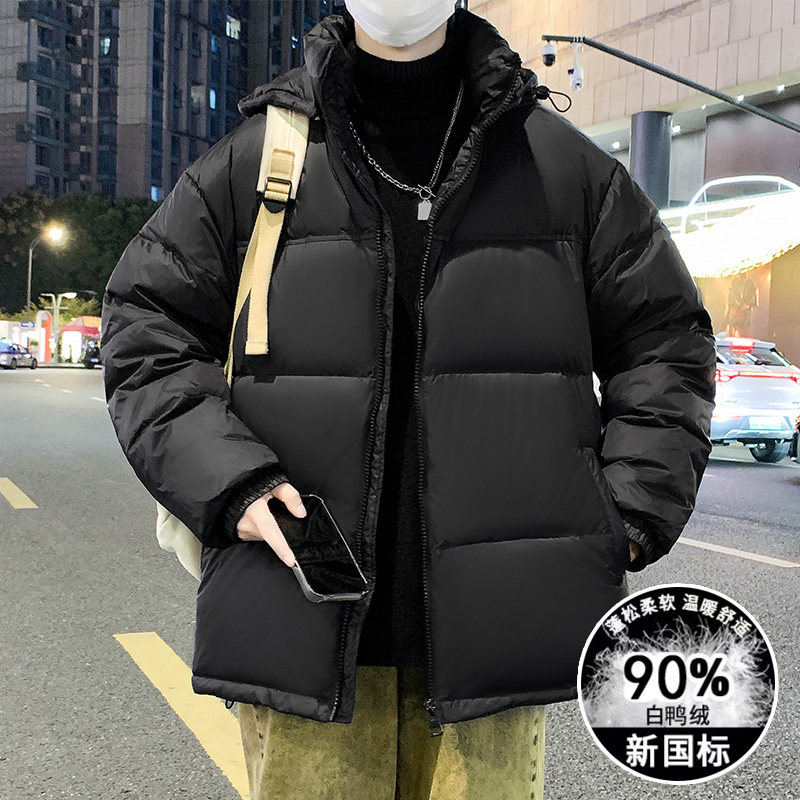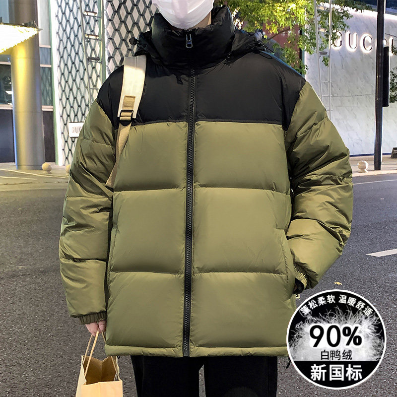 撞色短款羽绒服男士冬季潮潮流百搭加厚防寒面包服男款白鸭绒外套