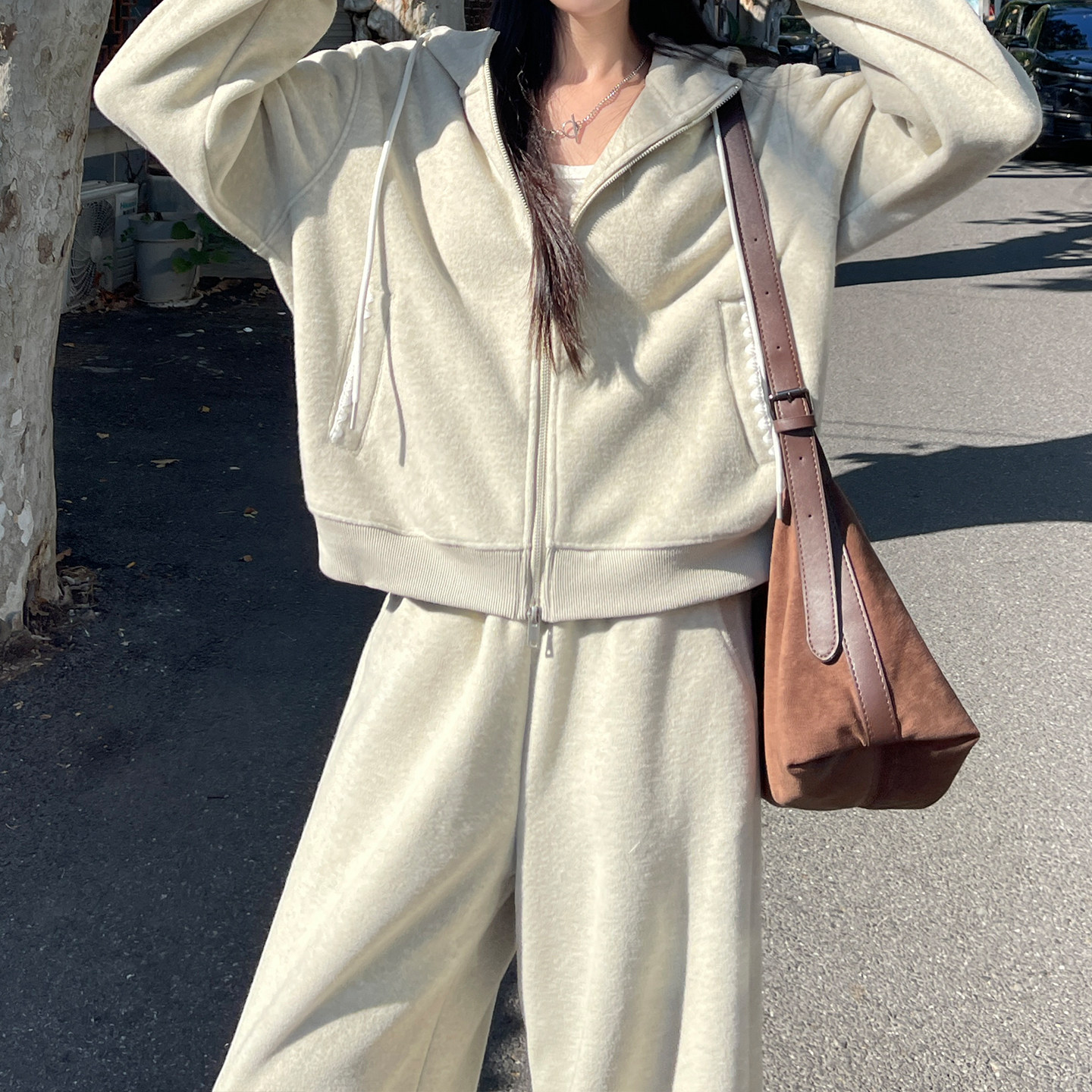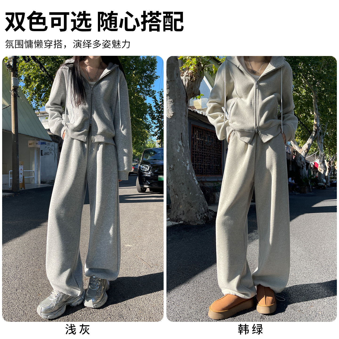 卫衣阔腿裤套装女2026新款秋冬季加绒加厚高级感慵懒休闲运动裤子