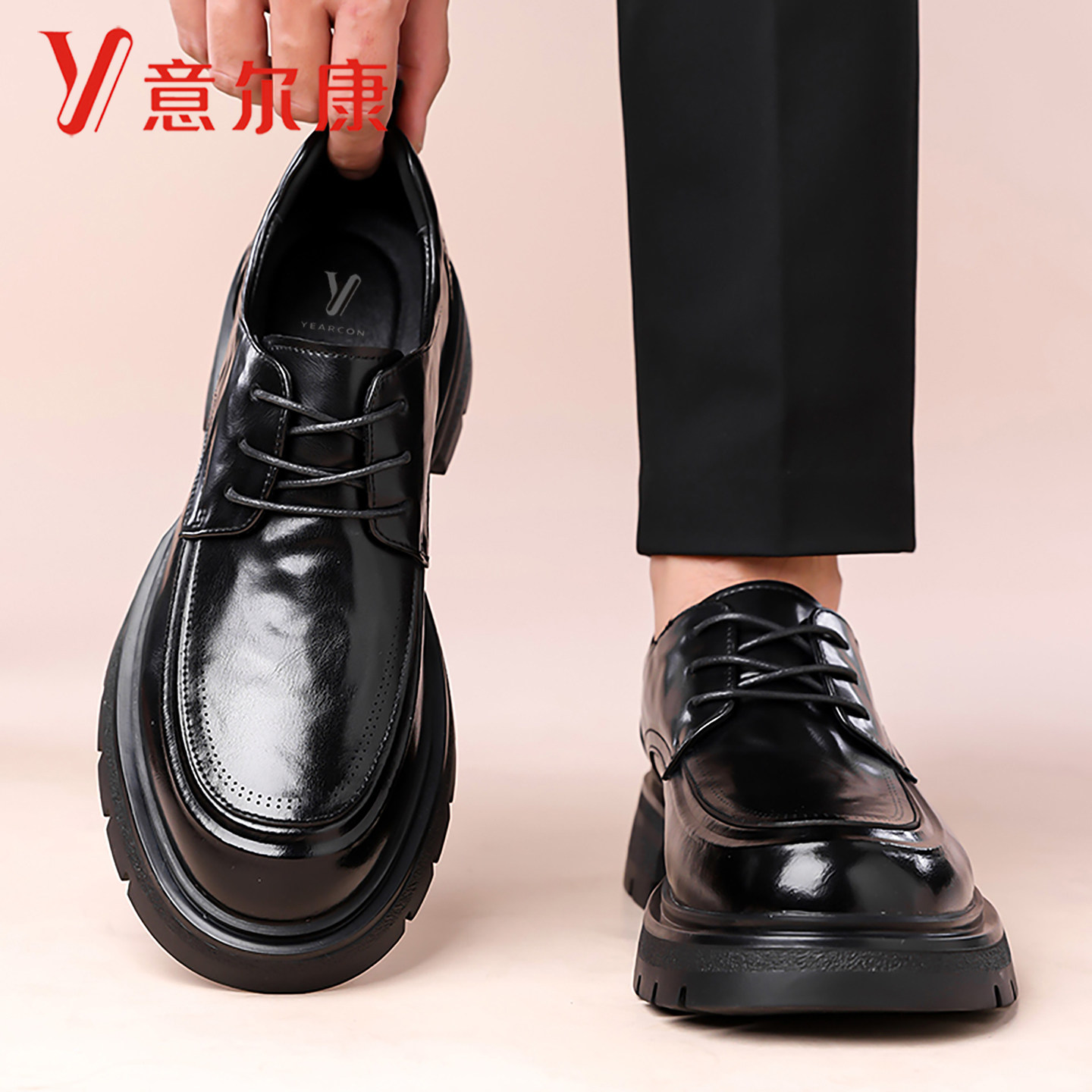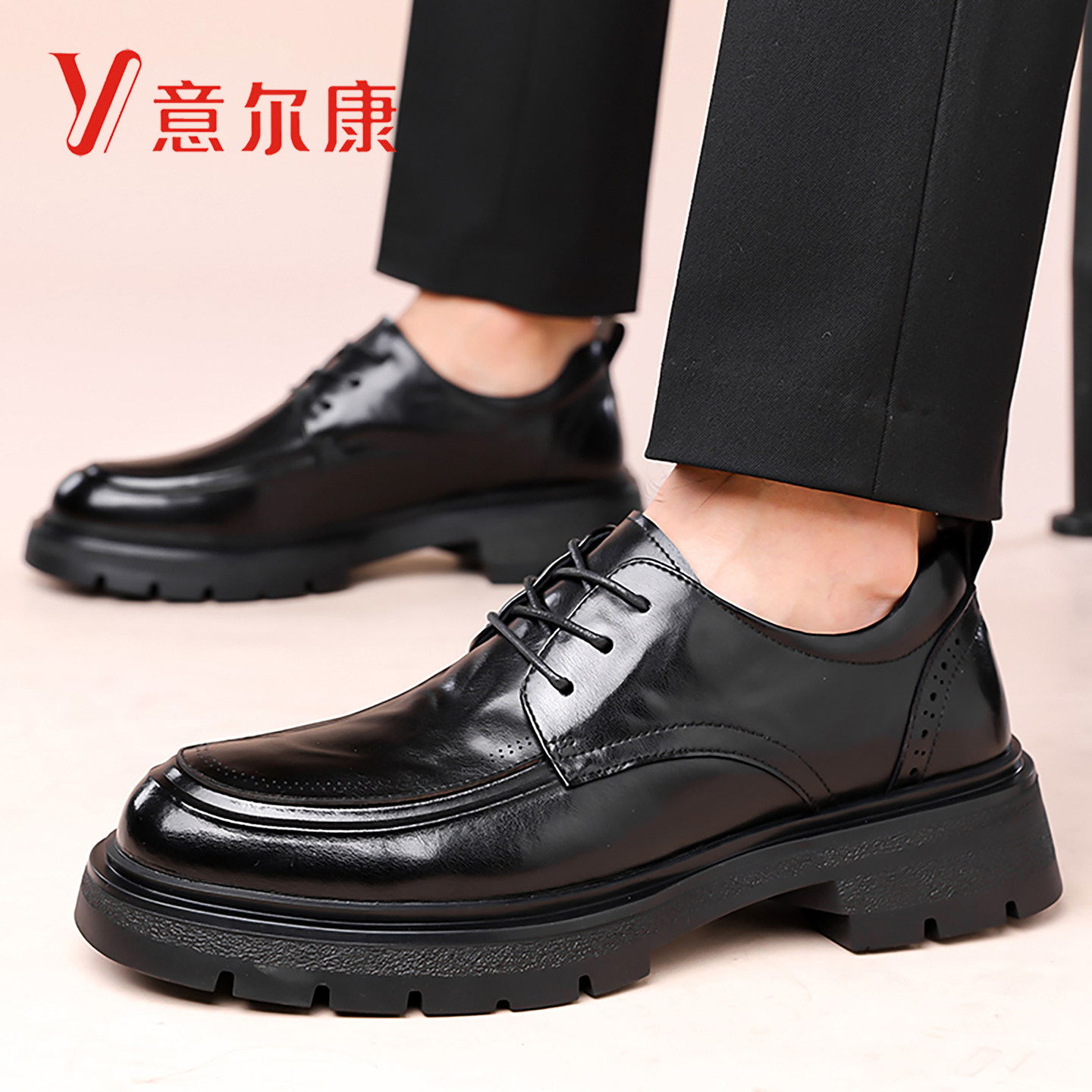 意尔康正装皮鞋男士2026新款商务休闲真皮男鞋厚底增高结婚新郎鞋
