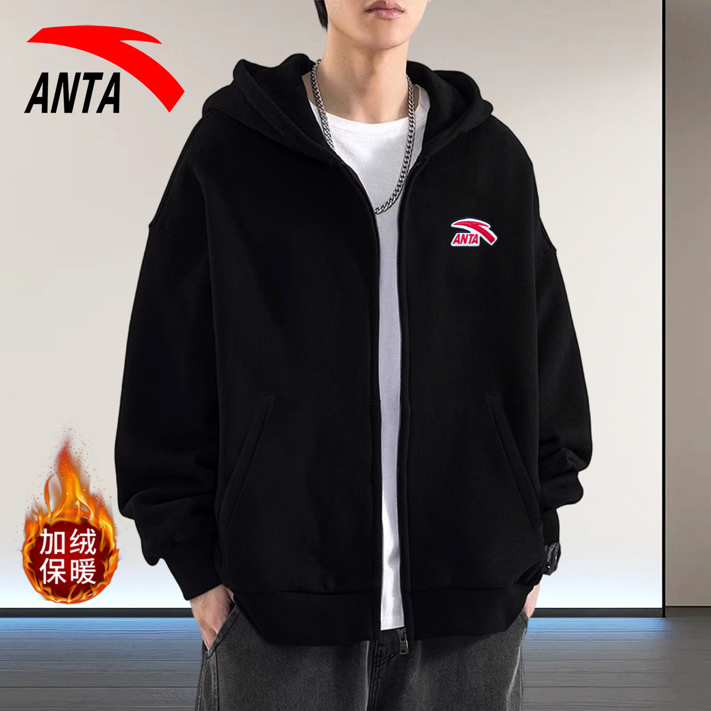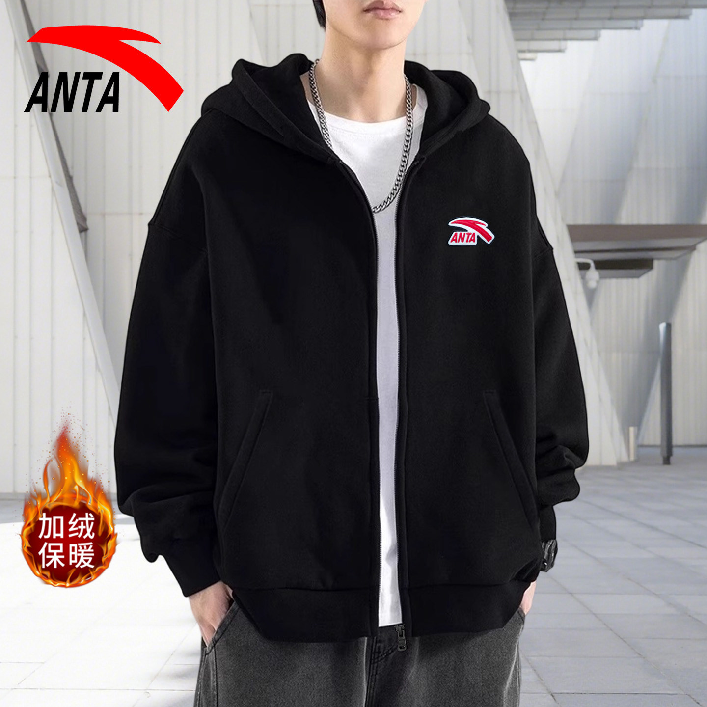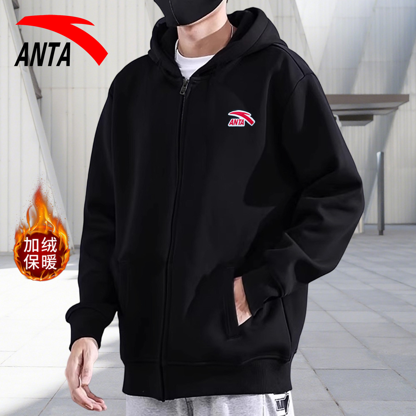安踏外套男连帽加绒2026新款春季男款针织开衫卫衣运动服上衣男装