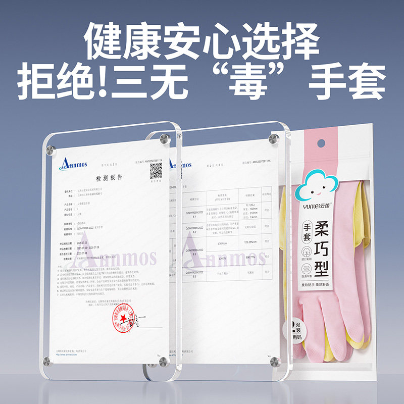 云蕾洗碗手套厨房家务清洁洗衣耐用橡胶防滑手套2双装通用码