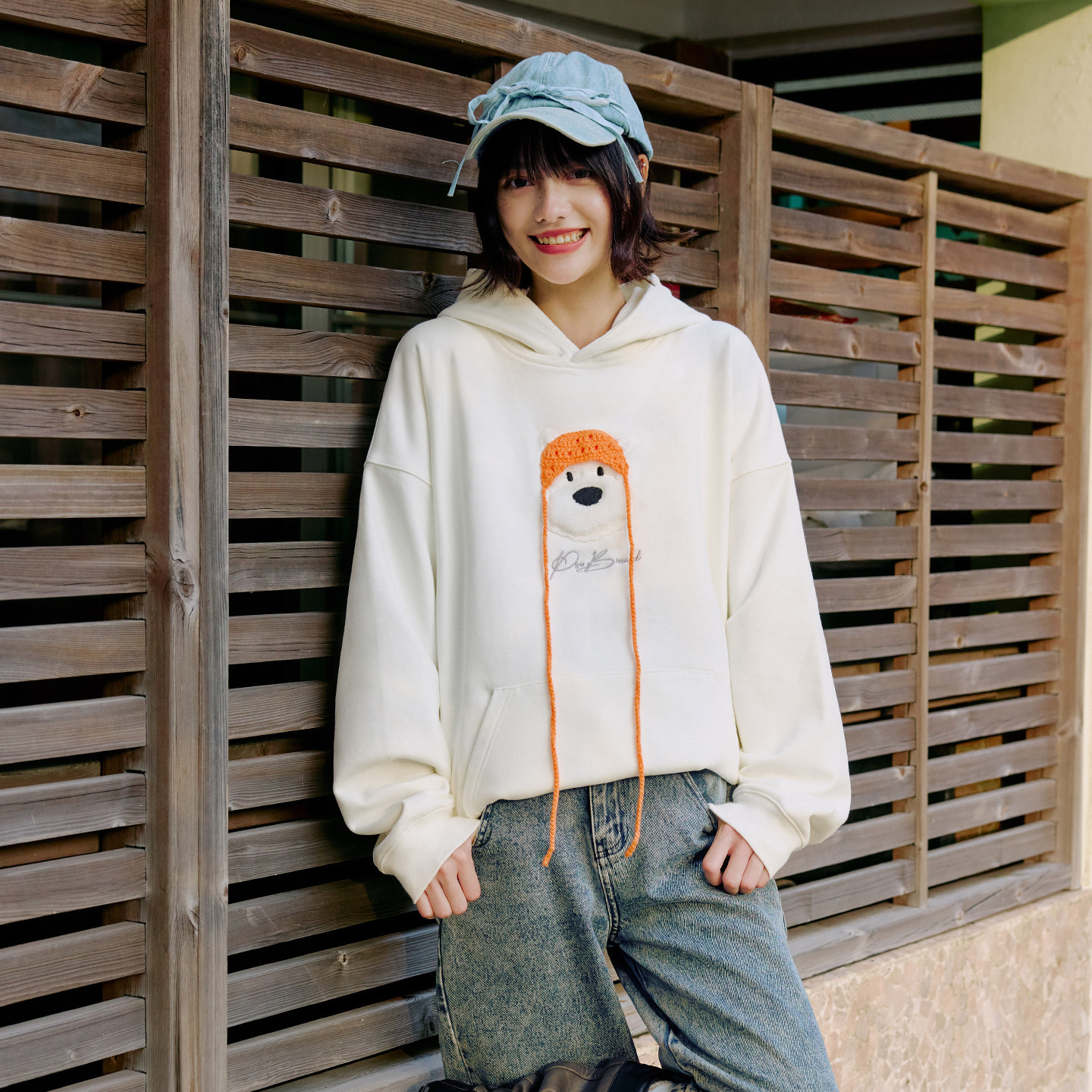 PSO Brand男装女装可爱小狗抓绒连帽加绒卫衣女款宽松保暖厚外套