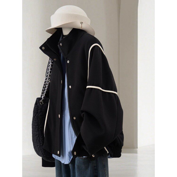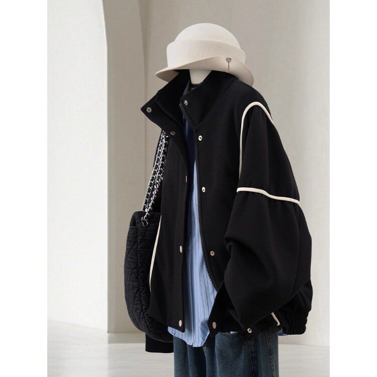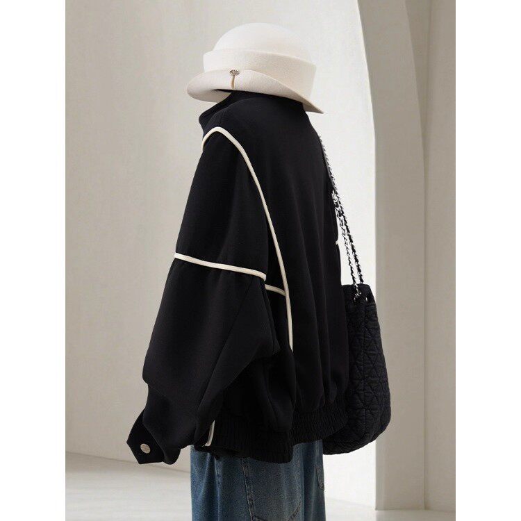 大码300斤高级感撞色棒球服外套女秋冬新款胖MM宽松休闲夹克上衣2