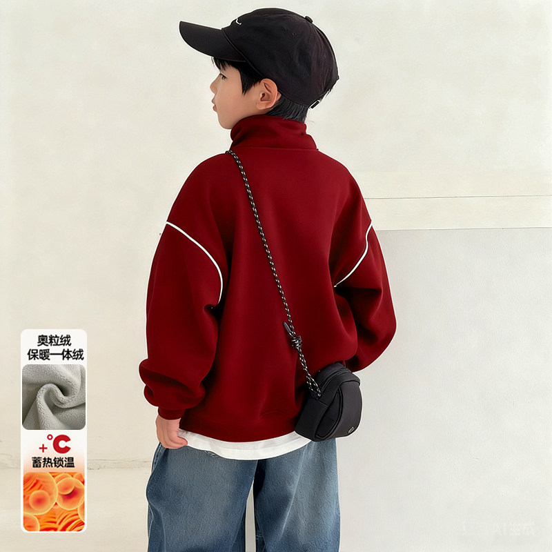 男童超好看红色卫衣2025新款青少年男孩洋气冬装儿童加绒加厚上衣