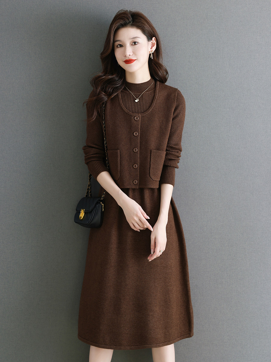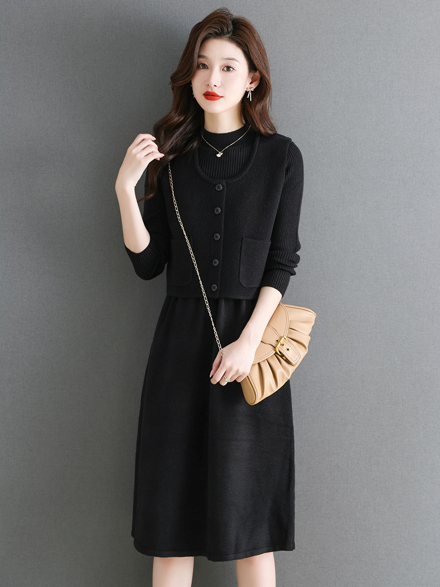 两件套针织连衣裙女秋冬季新款高级感小个子减龄套装中长款毛衣裙