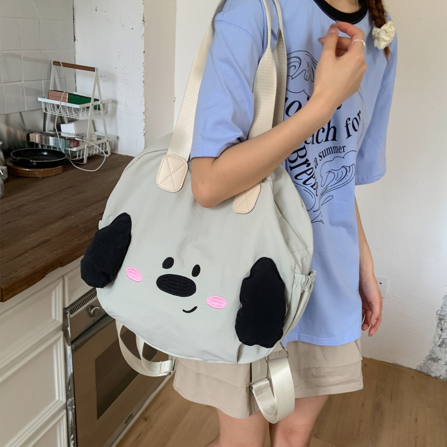 托特包女小个子2025新款可爱百搭大容量通勤包包带拉链双肩帆布包